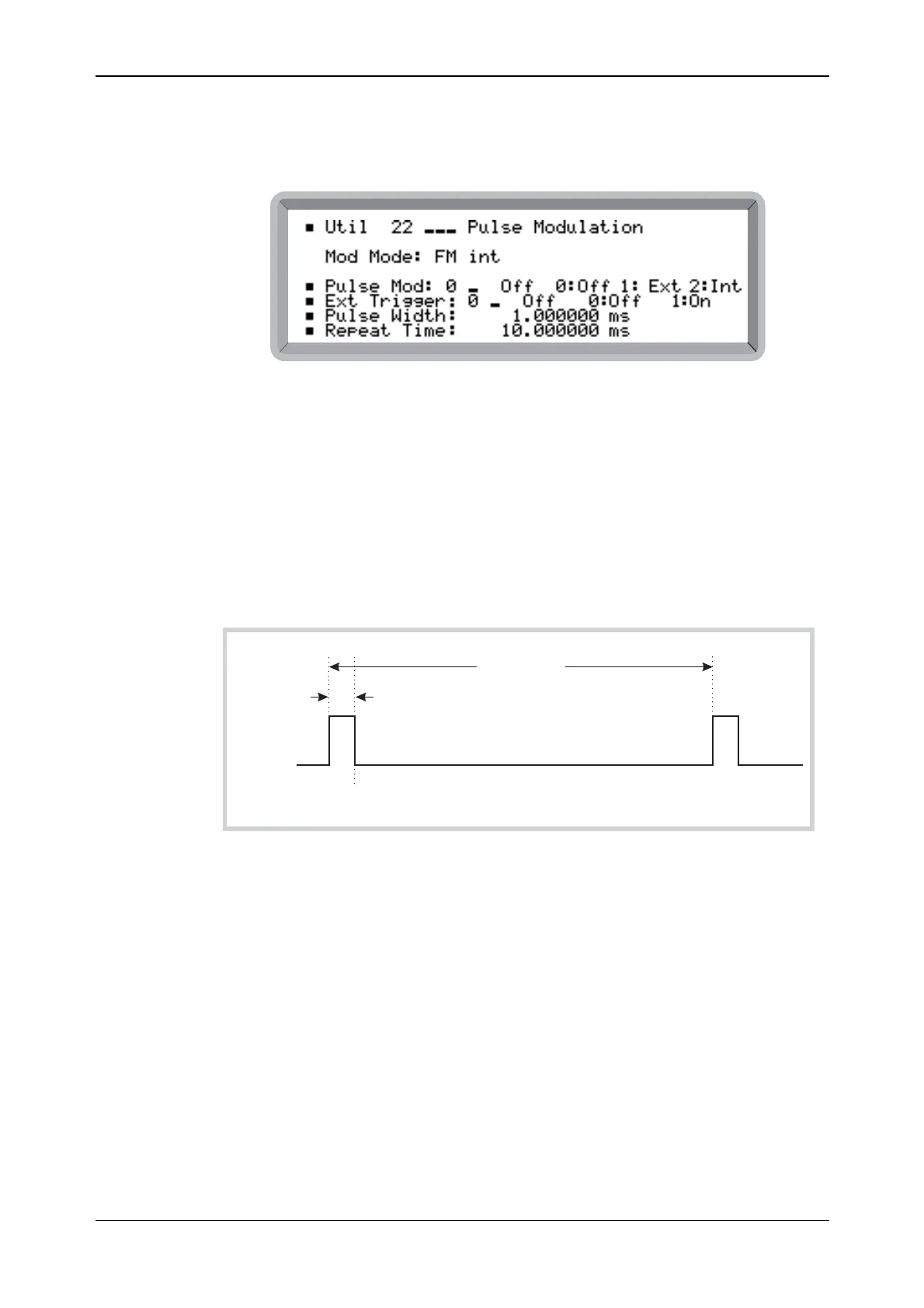 (1) Select the Util 22: Pulse Modulation menu. This shows the currently selected modulation