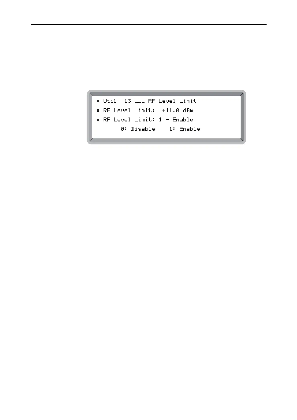 (1) Select the Util 13: RF Level Limit menu. This shows the currently selected RF level limit