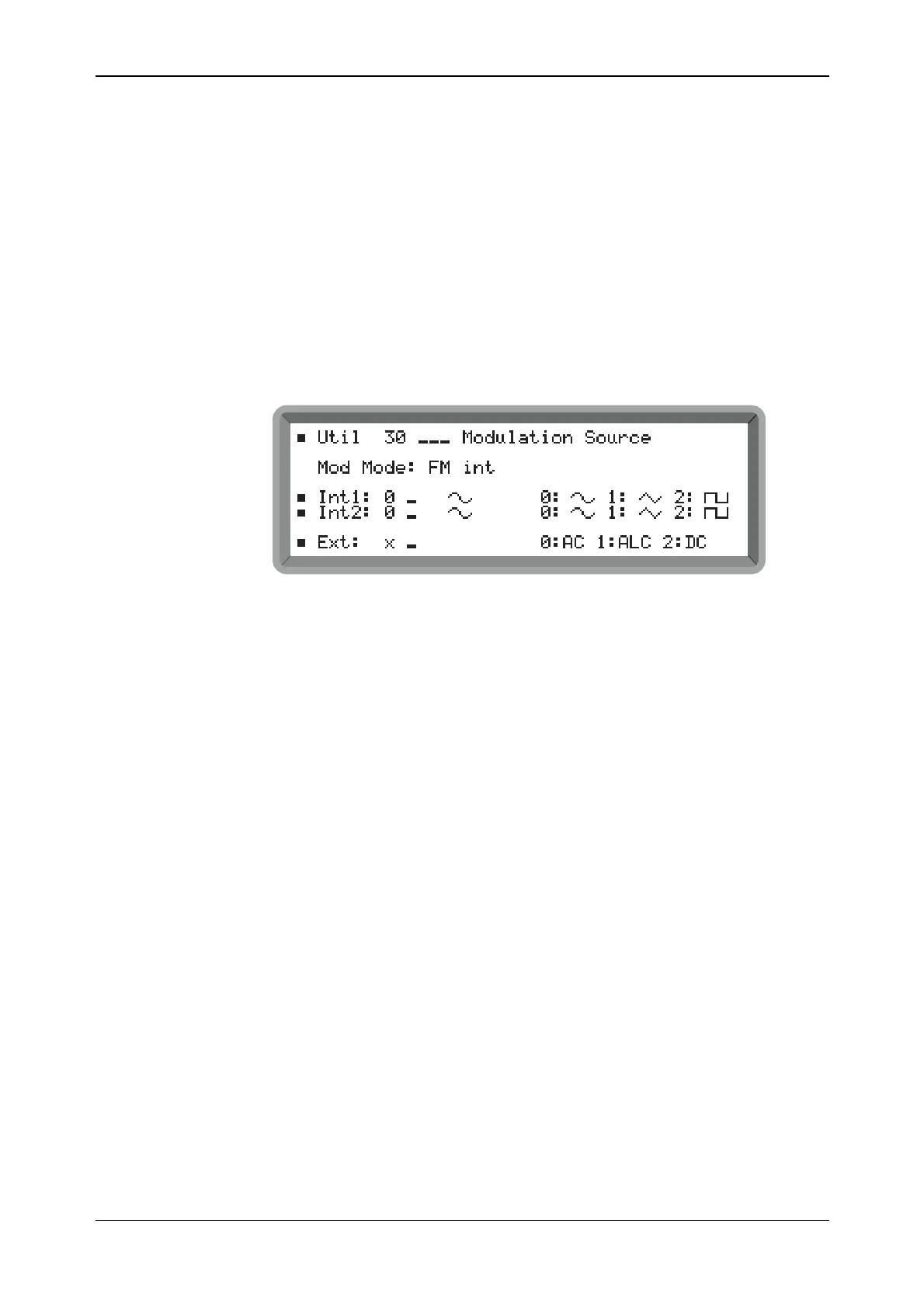 Having previously selected internal modulation from the Util 20: Modulation Mode menu, select