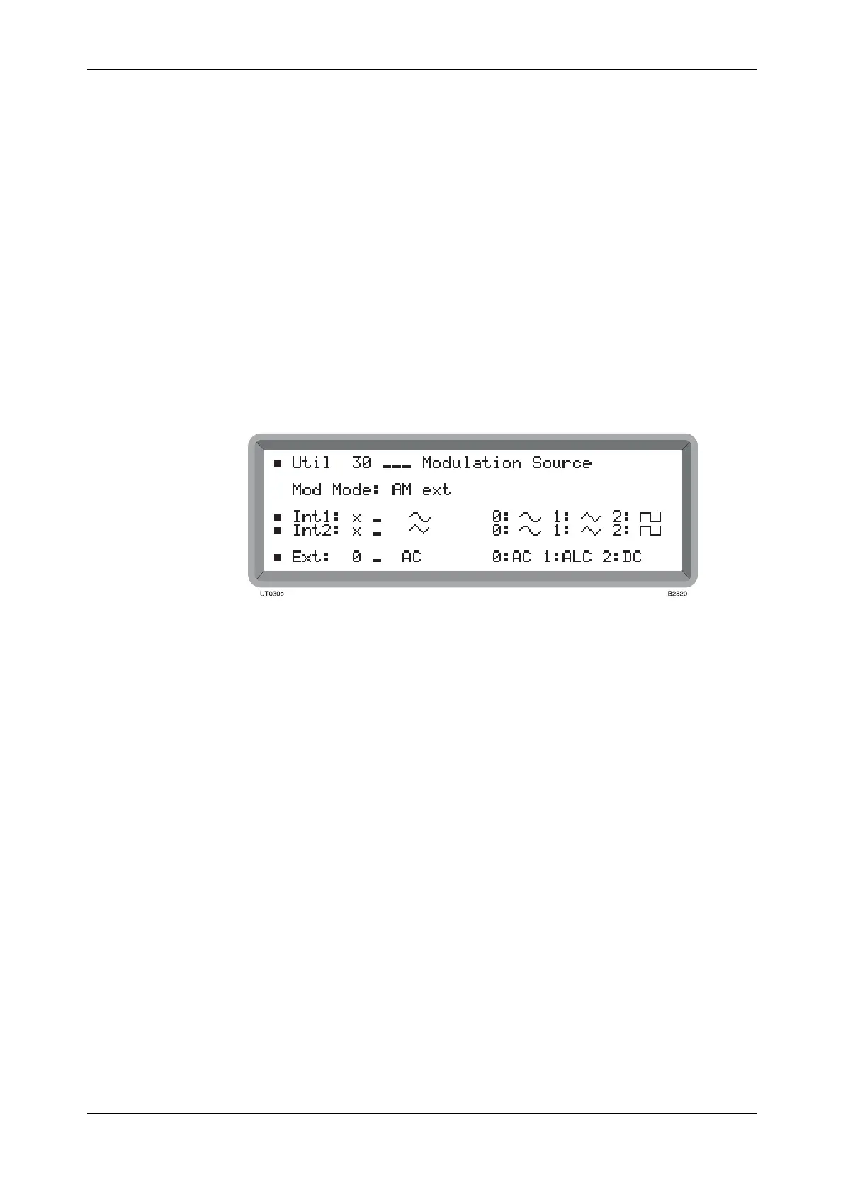 External source selection may also be made by means of the Util 30: Modulation Source menu