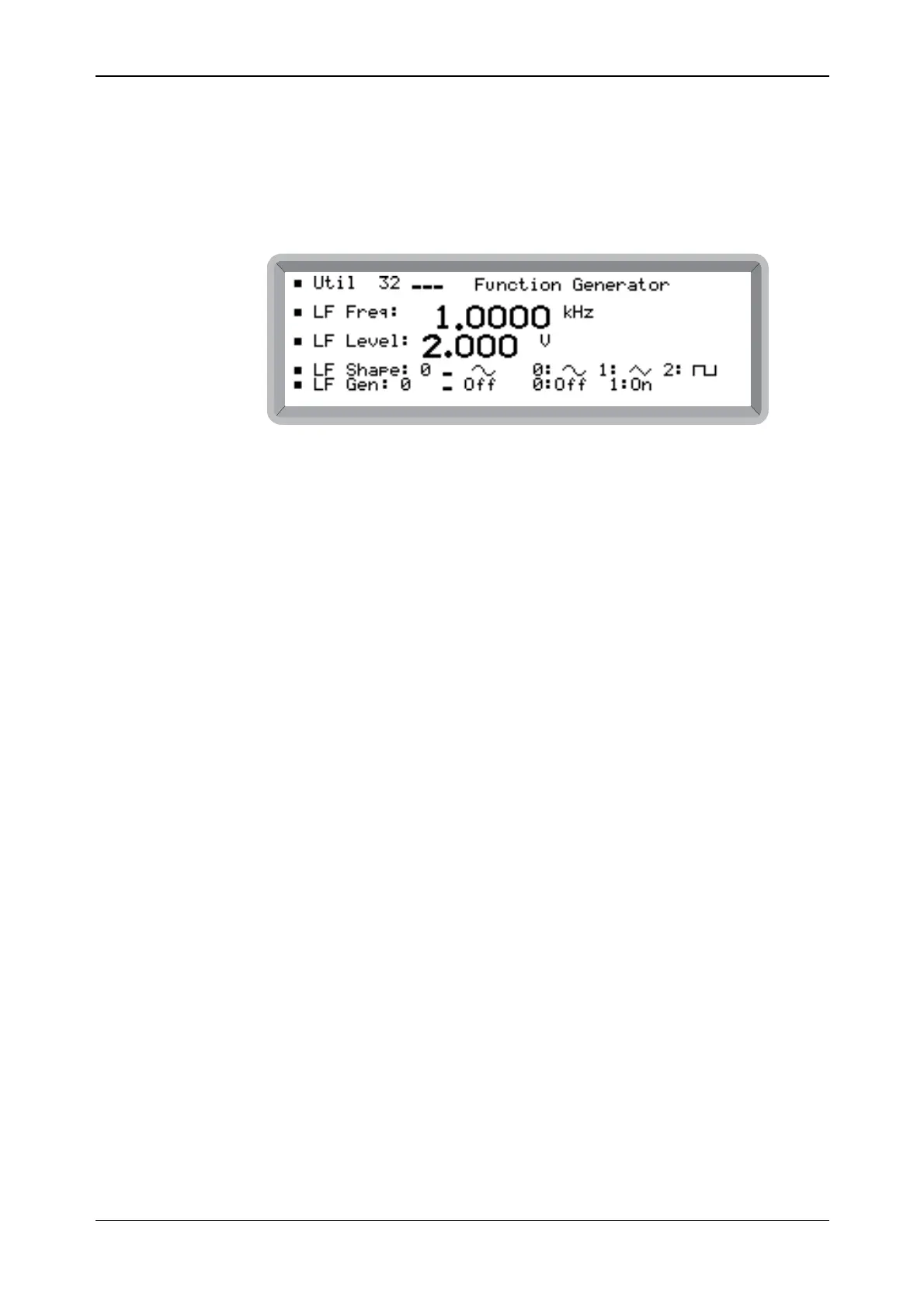 the Util 32: Function Generator menu. This shows the function generator screen