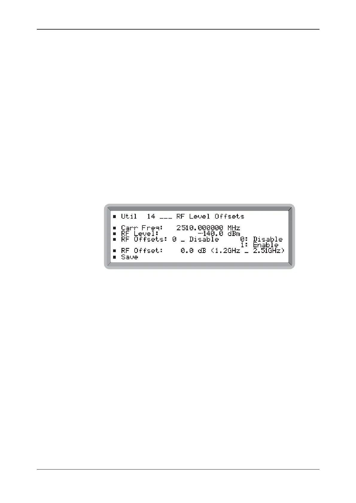 (1) Select the Util 14: RF Level Offsets menu. This shows the selected RF level offset for the