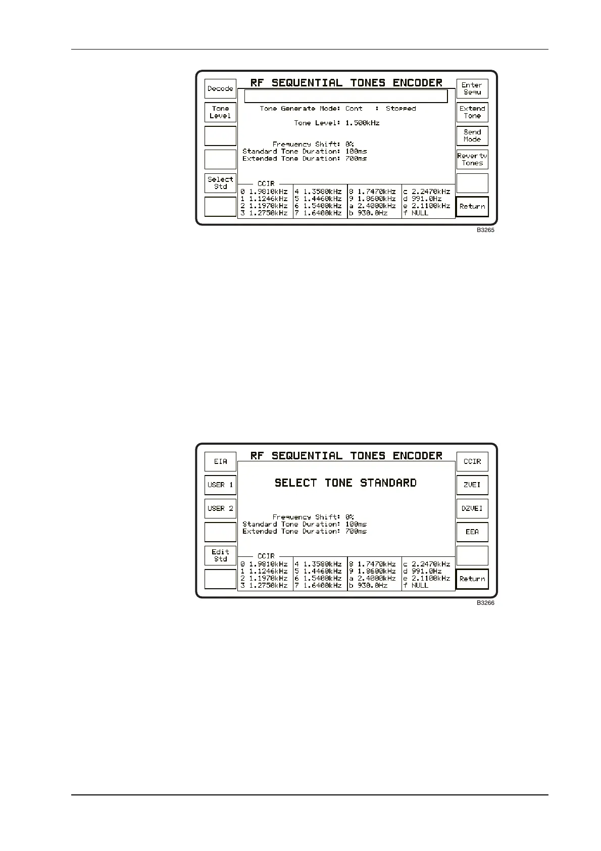 SELECT TONES STANDARD screen and menu as shown in Fig. 3-19, Sequential tones