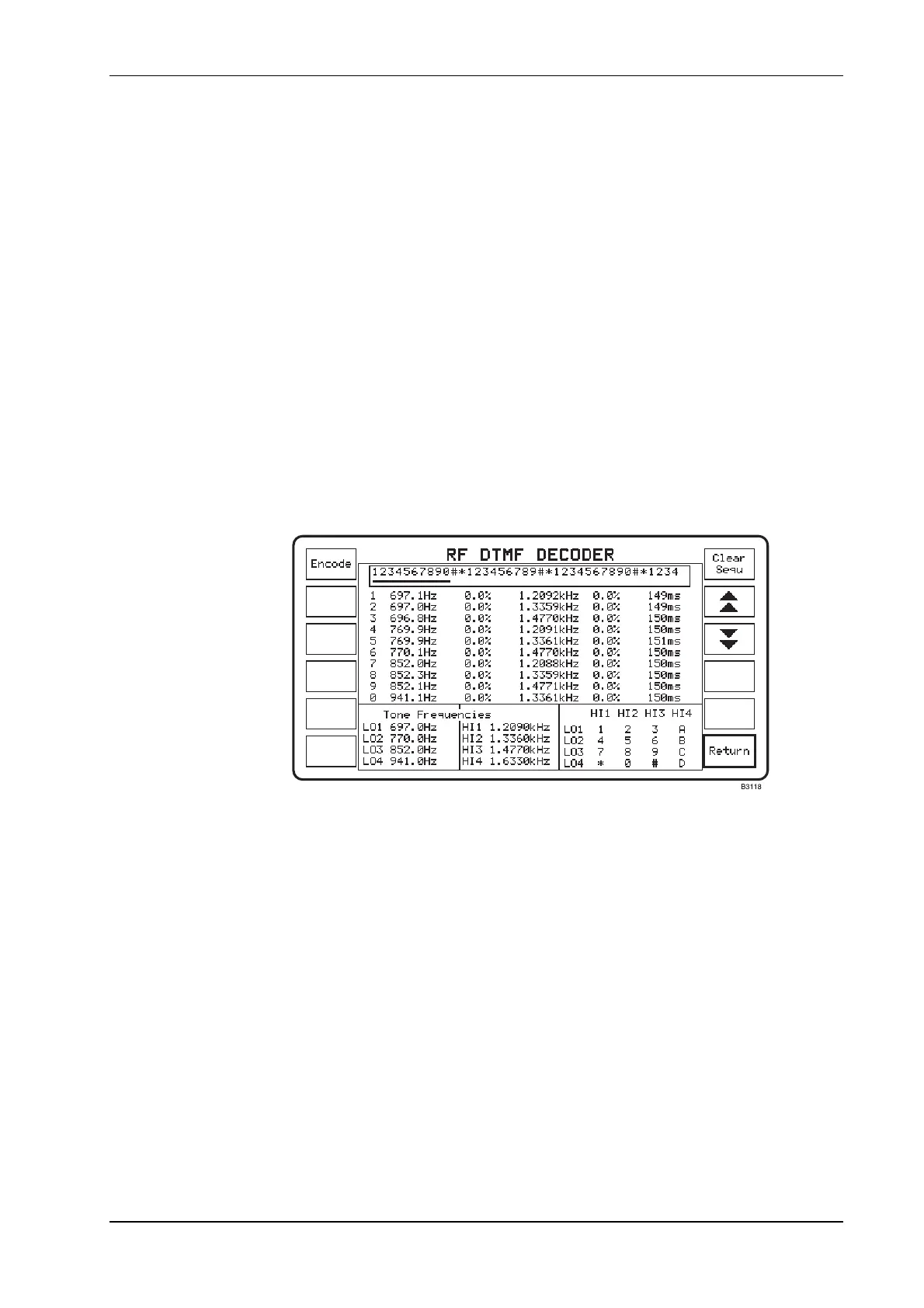 key will then give access to the RF DTMF DECODER screen shown in Fig. 3-23, RF DTMF