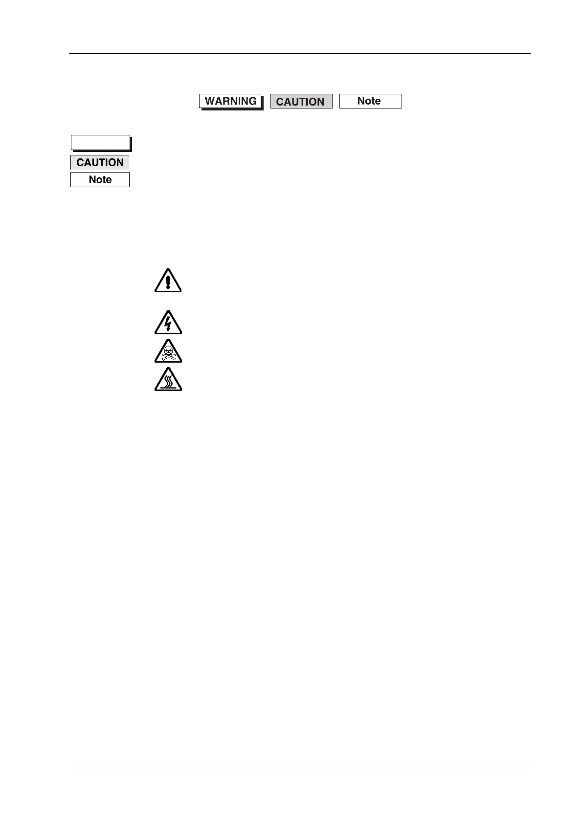 The meaning of hazard symbols appearing on the equipment and in the documentation is as