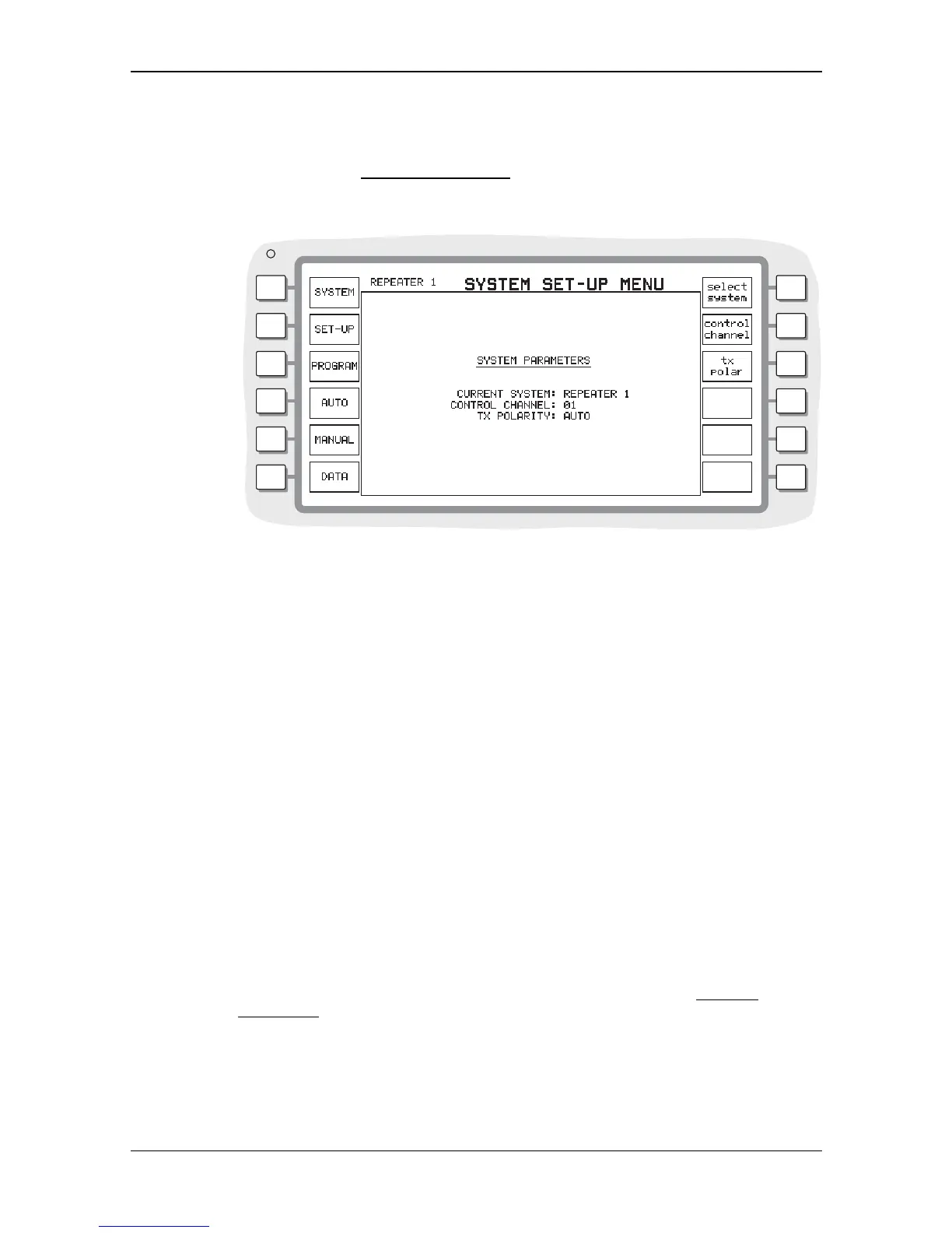 When you select the SYSTEM PARAMETERS menu the EDACS Repeater system parameters are