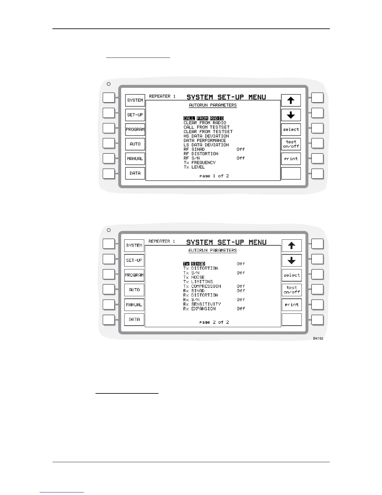 The AUTORUN PARAMETERS menu, shown in Fig. 2-9, allows you access to the parameters of