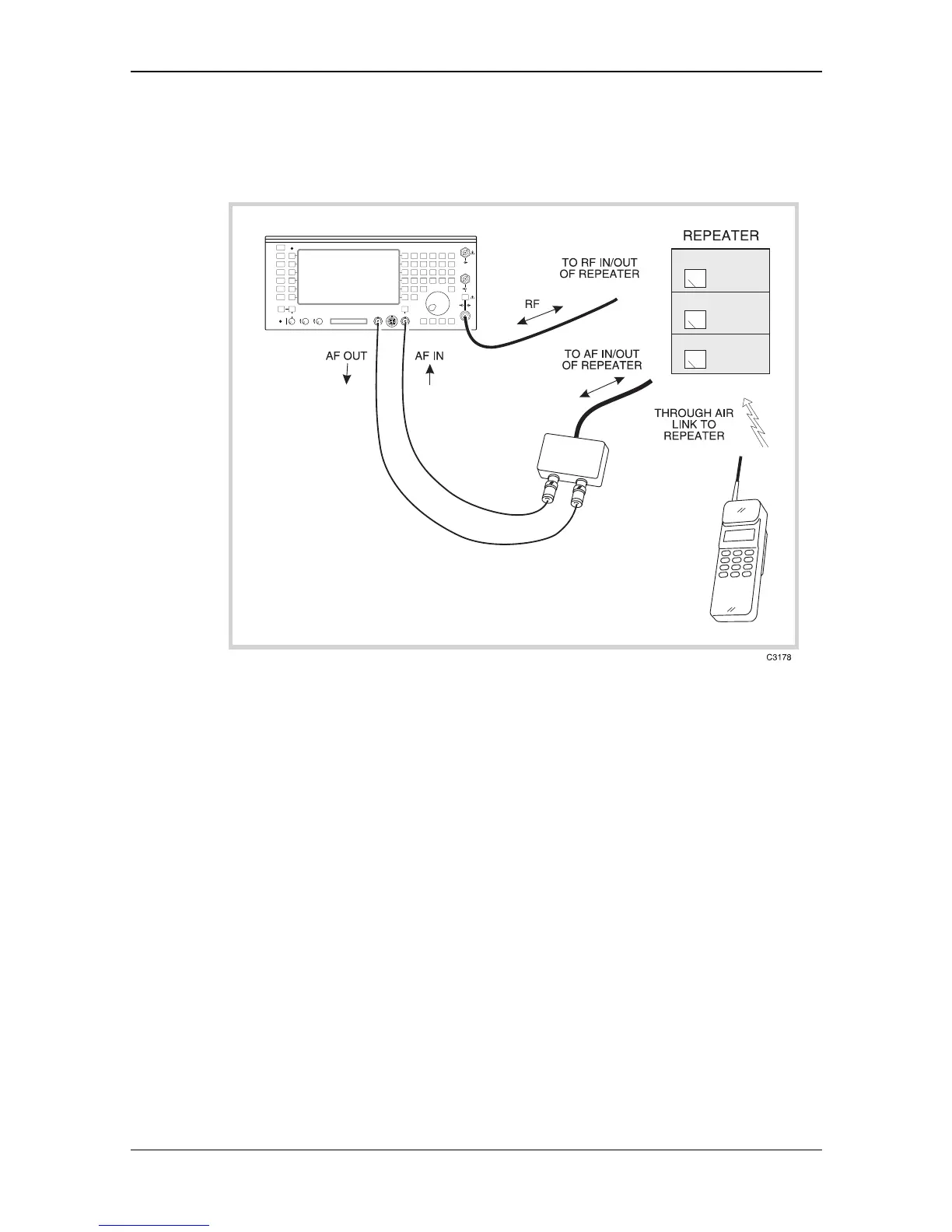 AF GEN OUTPUT connector of the Service Monitor to the audio input of the repeater and from