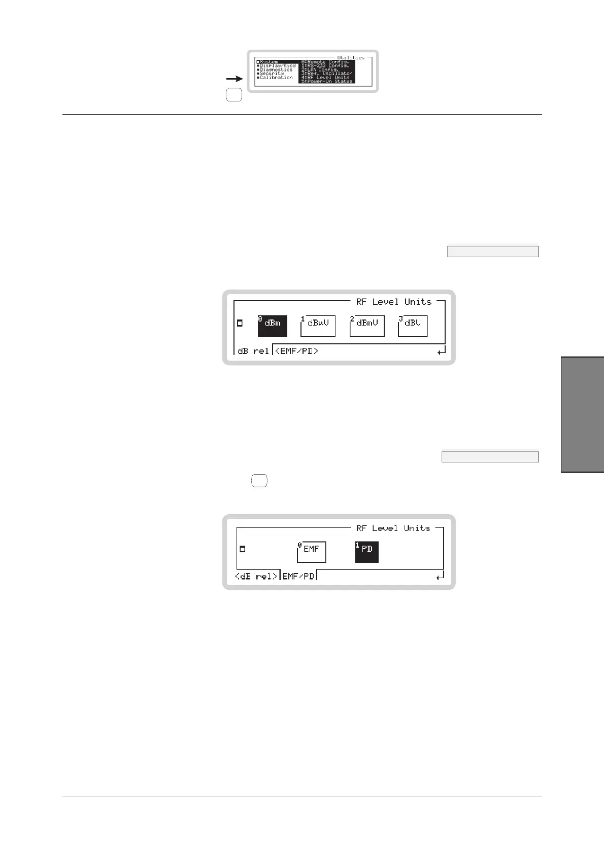 Press 3 on the numeric keypad to see the RF level dB units screen (Fig. 3-103).