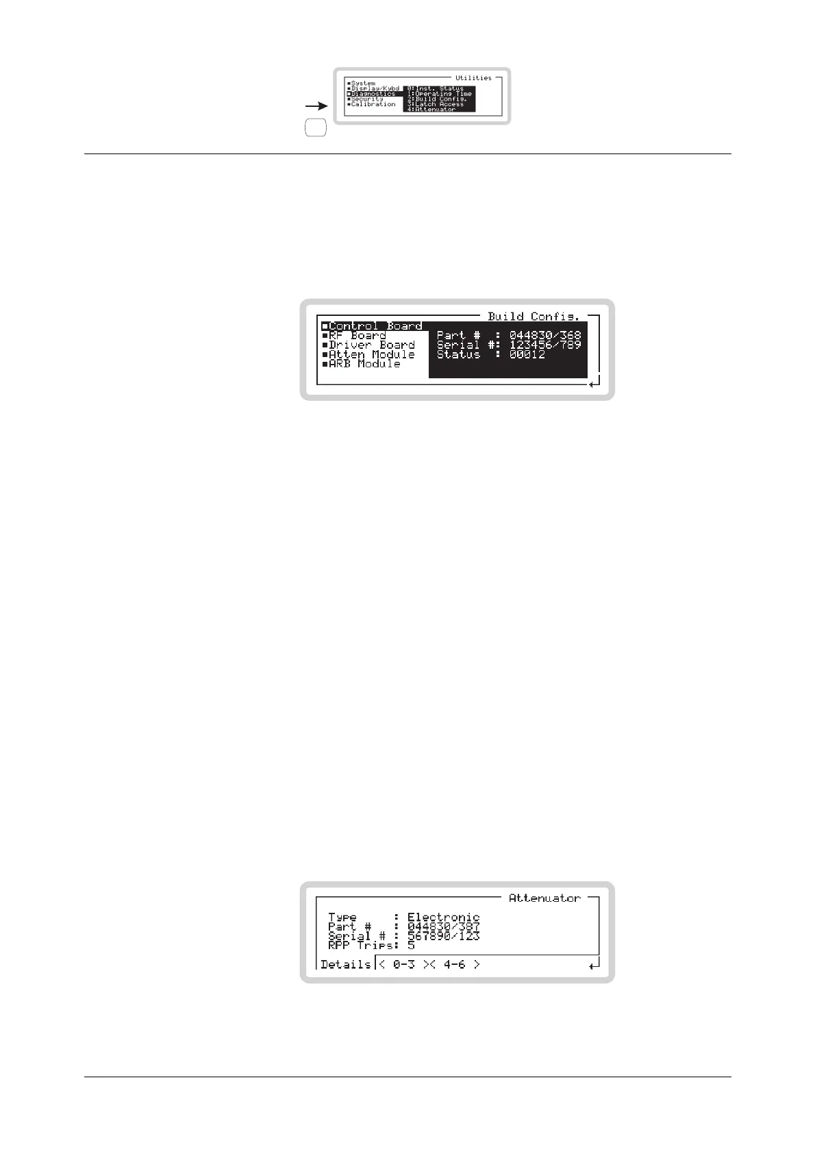Press 4 on the numeric keypad to see the attenuator status screen (Fig. 3-119).