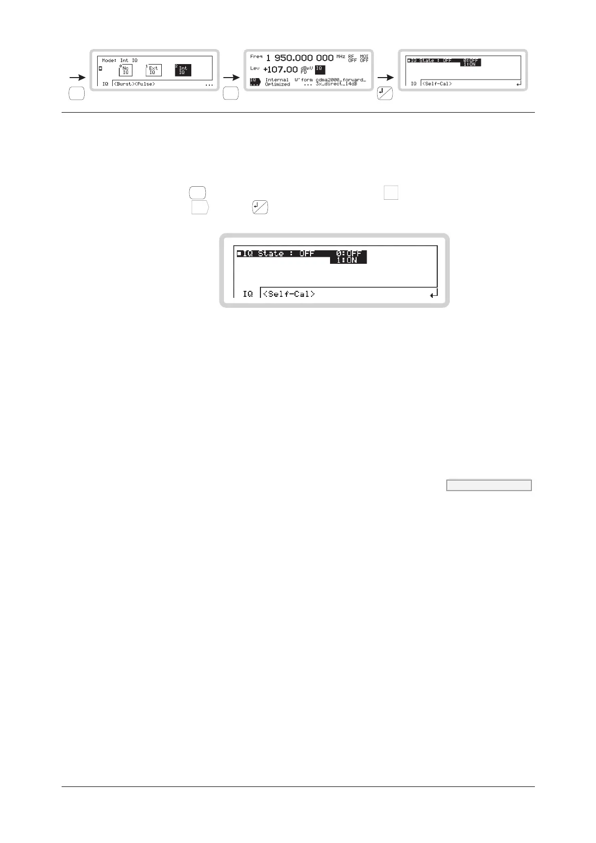 You can configure internal IQ modulation directly from the IQ sub-menus on the main screen.