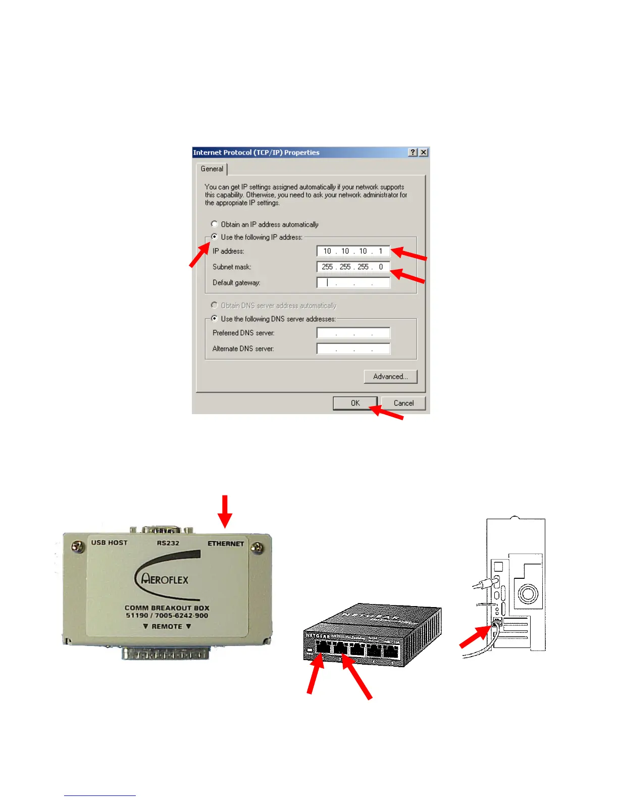 2. Select ‘Use the following IP address’ and set the IP Address to “ 10 10 10 1 ” and the