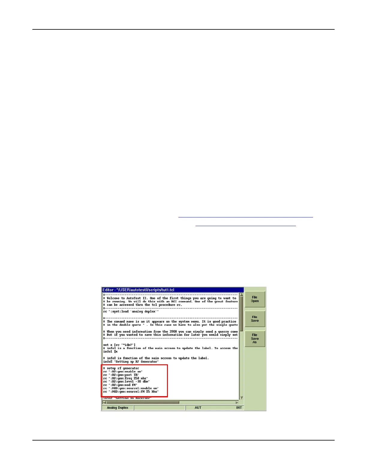 commands in AutoTest II, begin command lines with the Tcl procedure command rc. Refer to Fig. 6-