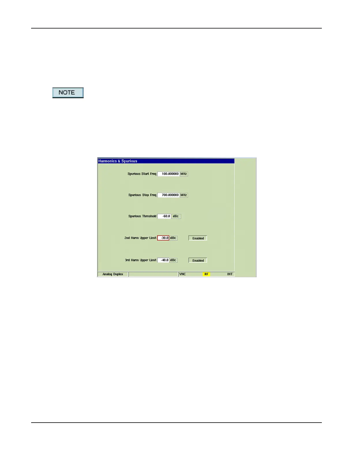 Fig. 8-16 Analog Duplex - Harm & Spur Limits Configuration Tile