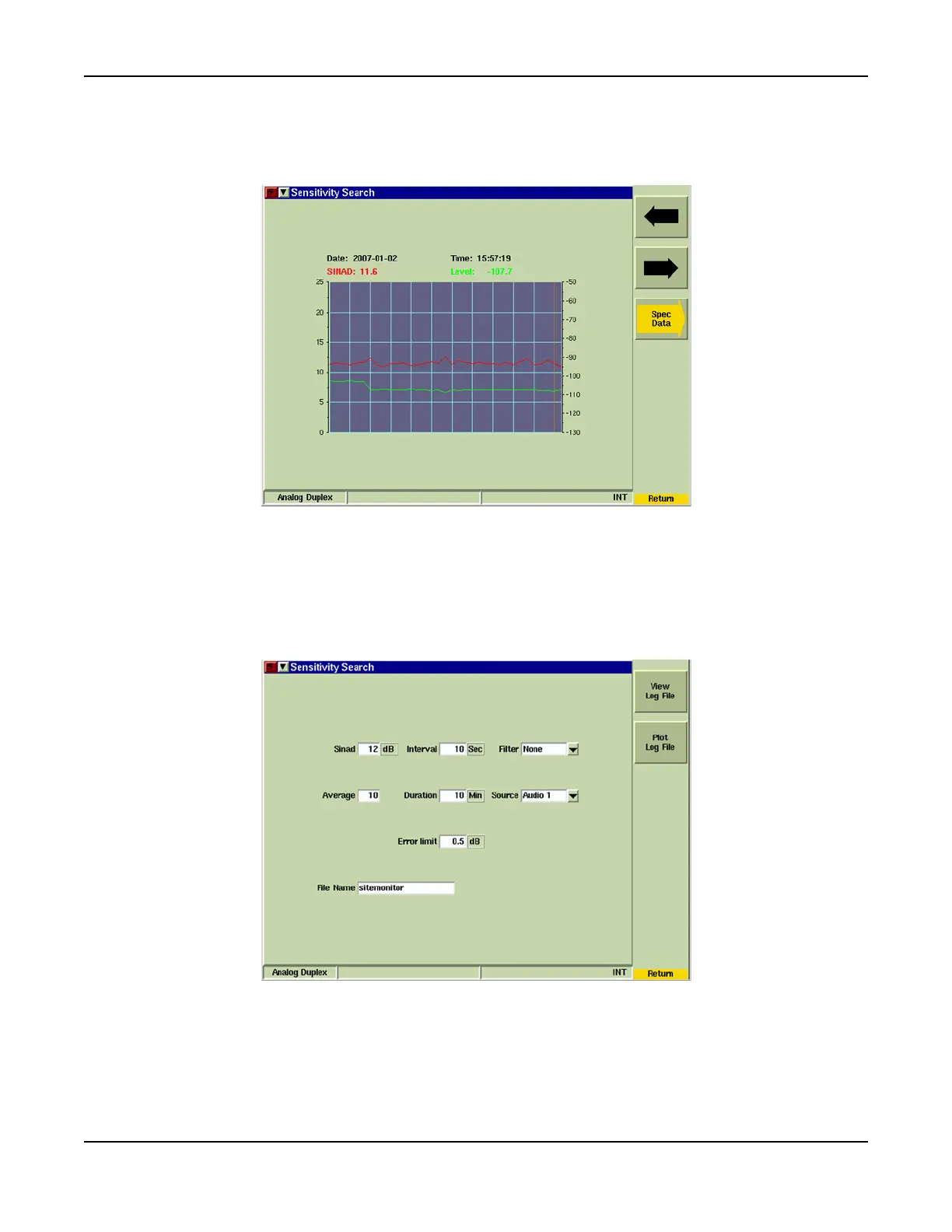 Displays Spectrum Analyzer plot of data as it is acquired (refer to Fig. 8-30). This soft key is