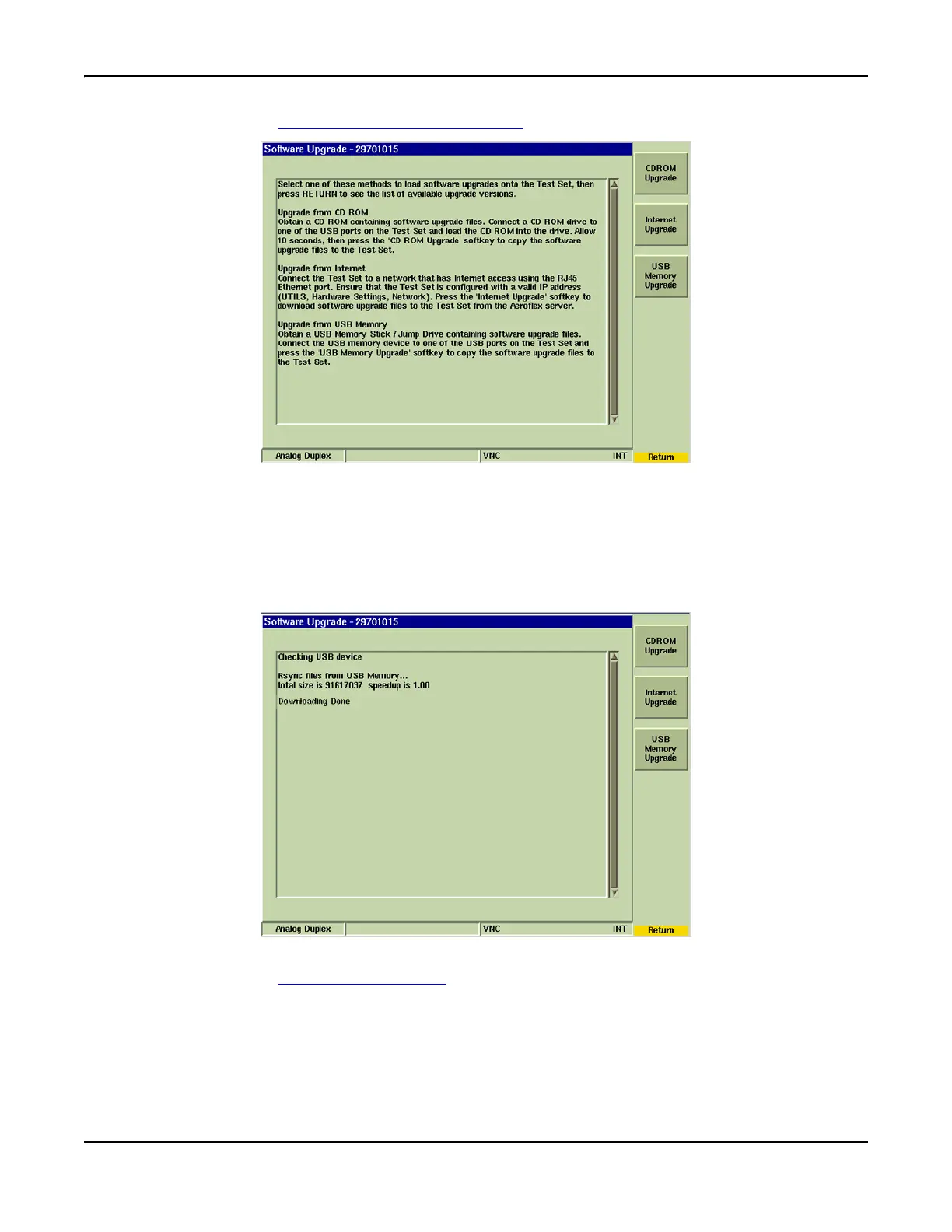 15. Select the [Upgrade All] Soft Key. The Test Set displays different status messages