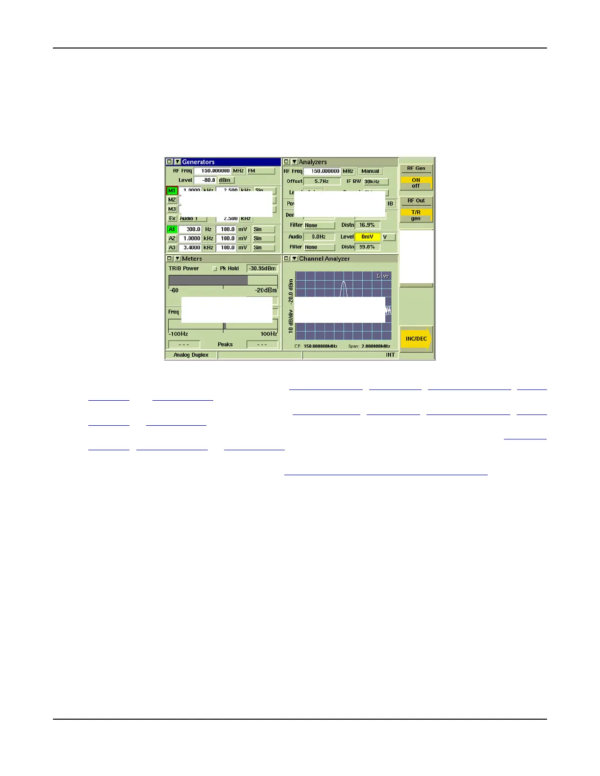 Fig. 8-2 shows the 3900 operating in Analog Duplex TEST (Mode) with display Tiles minimized. Focus is