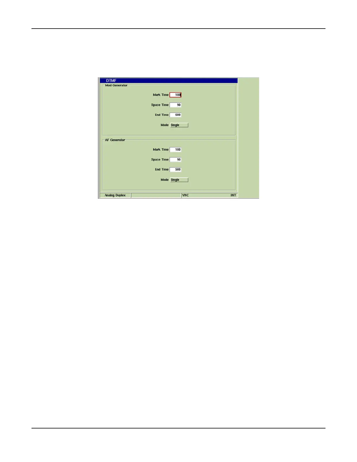 The DTMF Configuration Tile contains parameters that are used by the Test Set’s Generators when