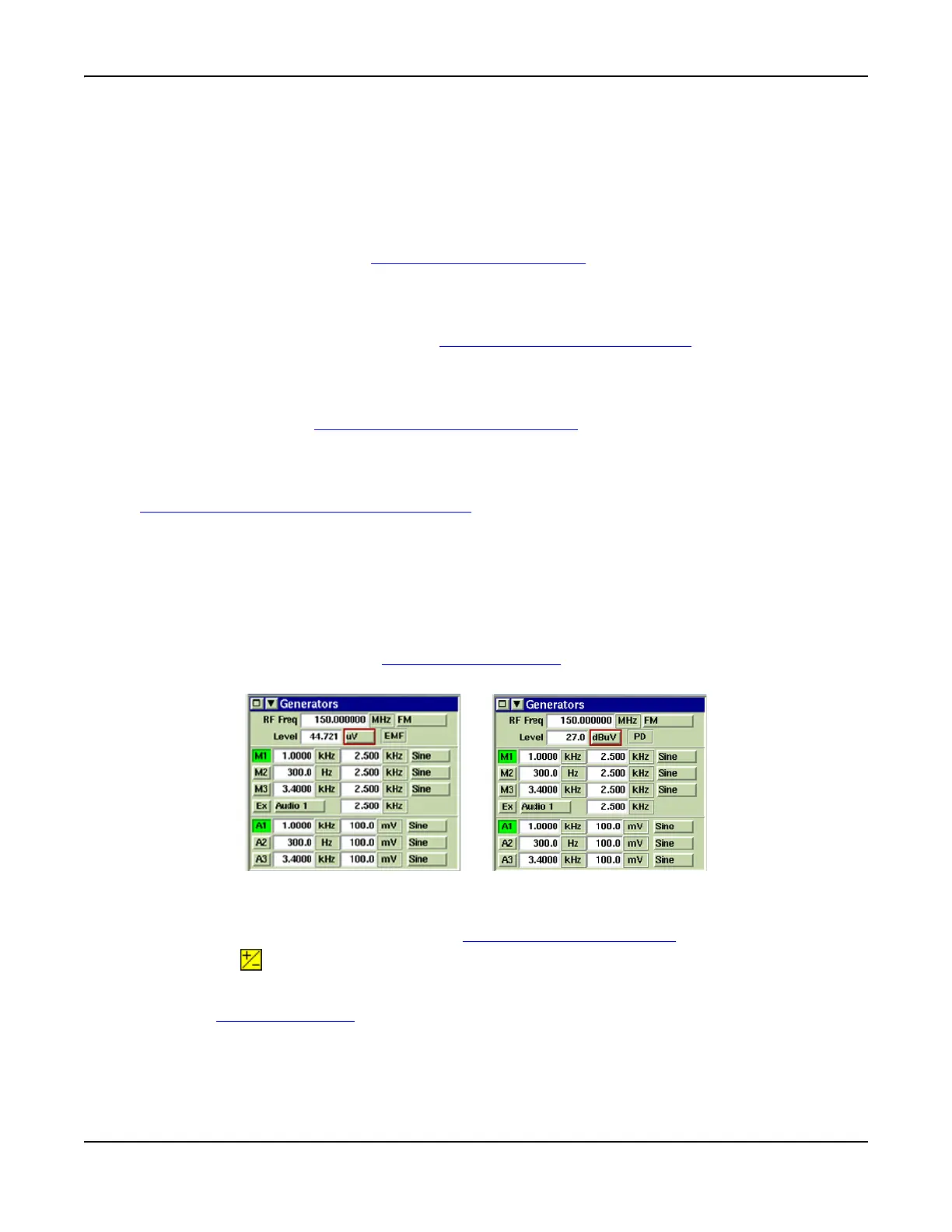 RF output is modified if an RF Level Offset value is set. Units of measure are dBm, V and dBμV.