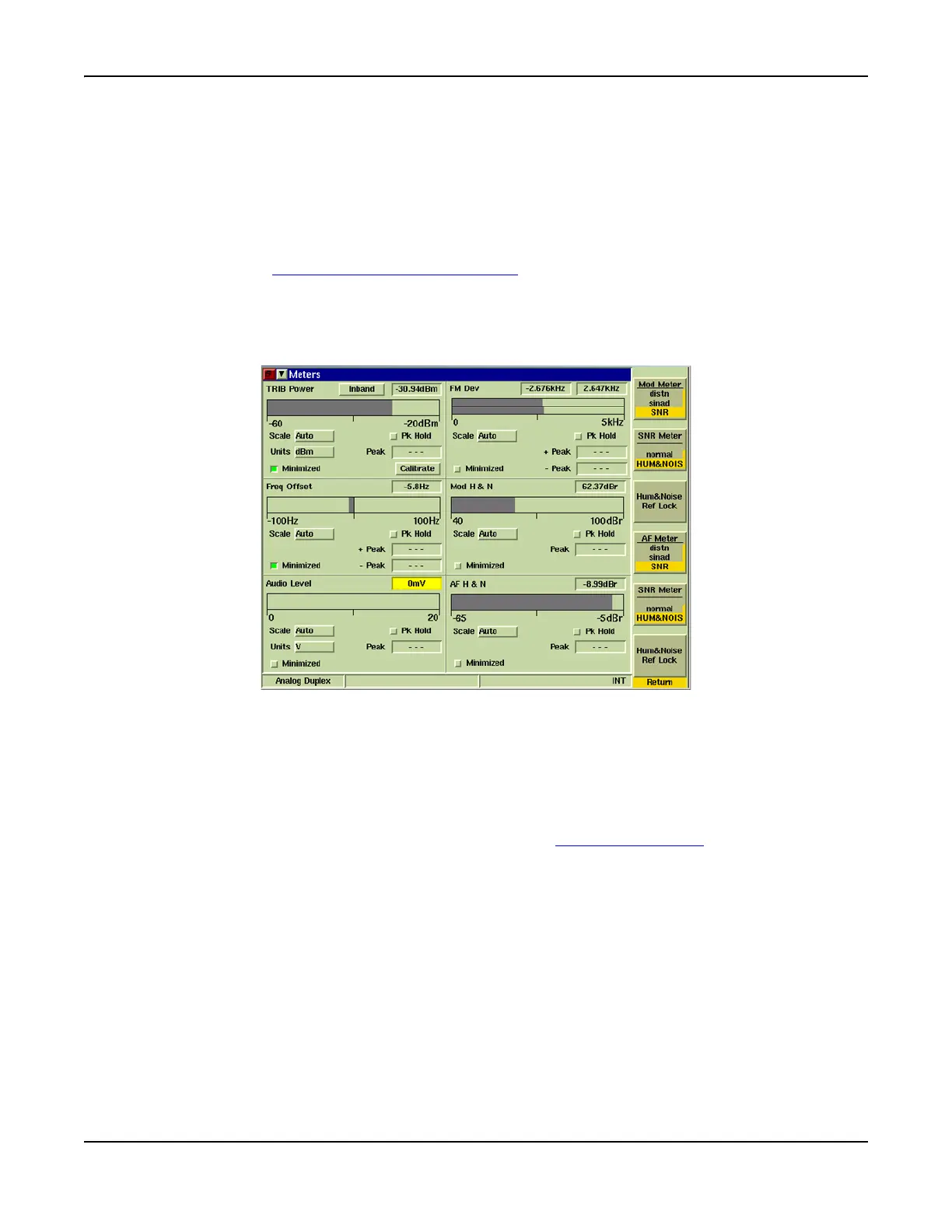 Fig. 8-26 Analog Duplex Meters Tile - Hum & Noise SNR Selected