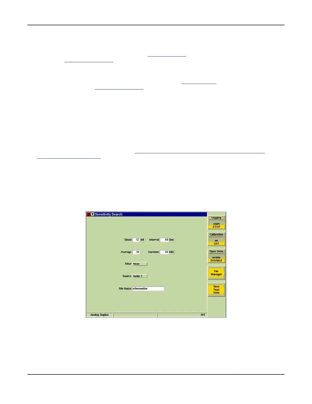 Sensitivity Search is also used to log the spectrum trace of the RF signal. Sensitivity Search data