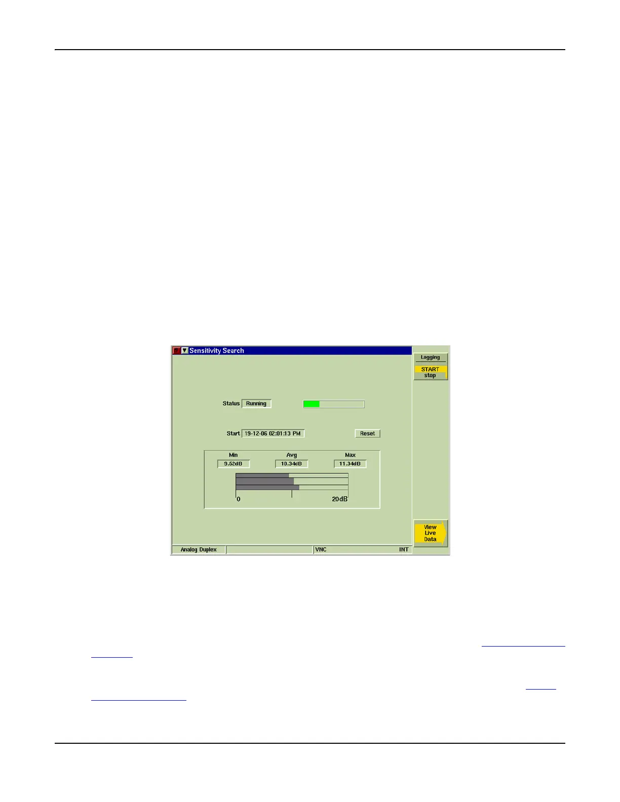 Starts and stops logging data. When Status is Running, the Sensitivity Search Tile appears as