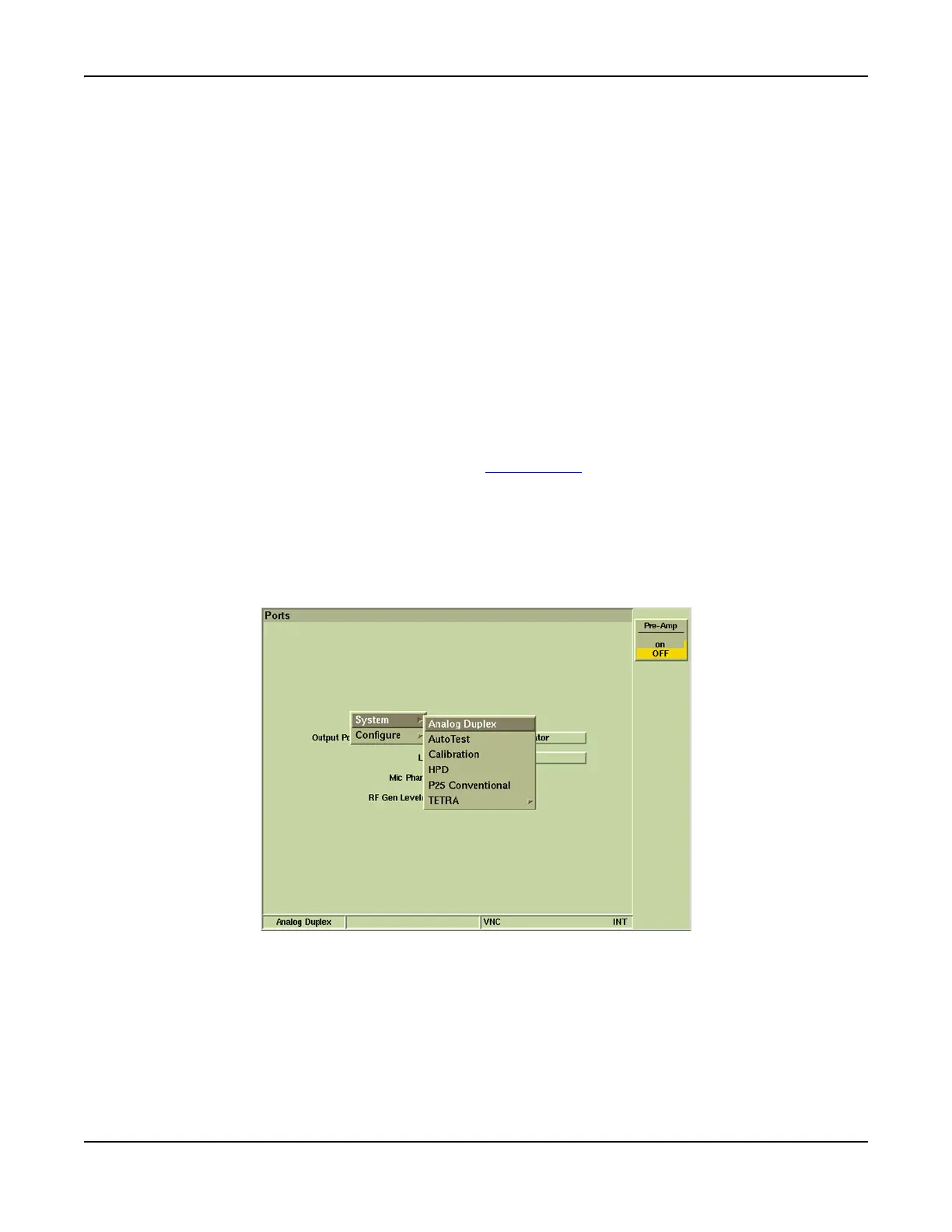 When the Test Set is in CONFIG Mode, the Configuration menu and functions of the selected System are