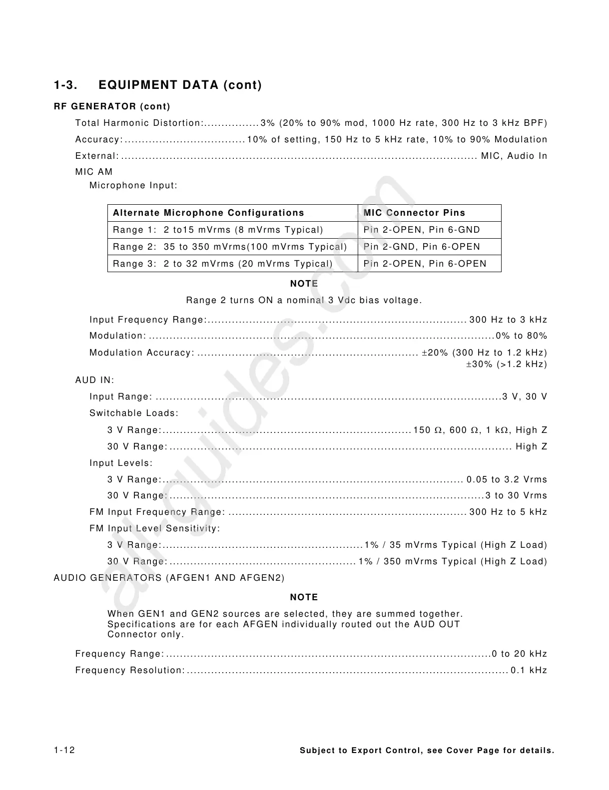 Specifications are for each AFGEN individually routed out the AUD OUT