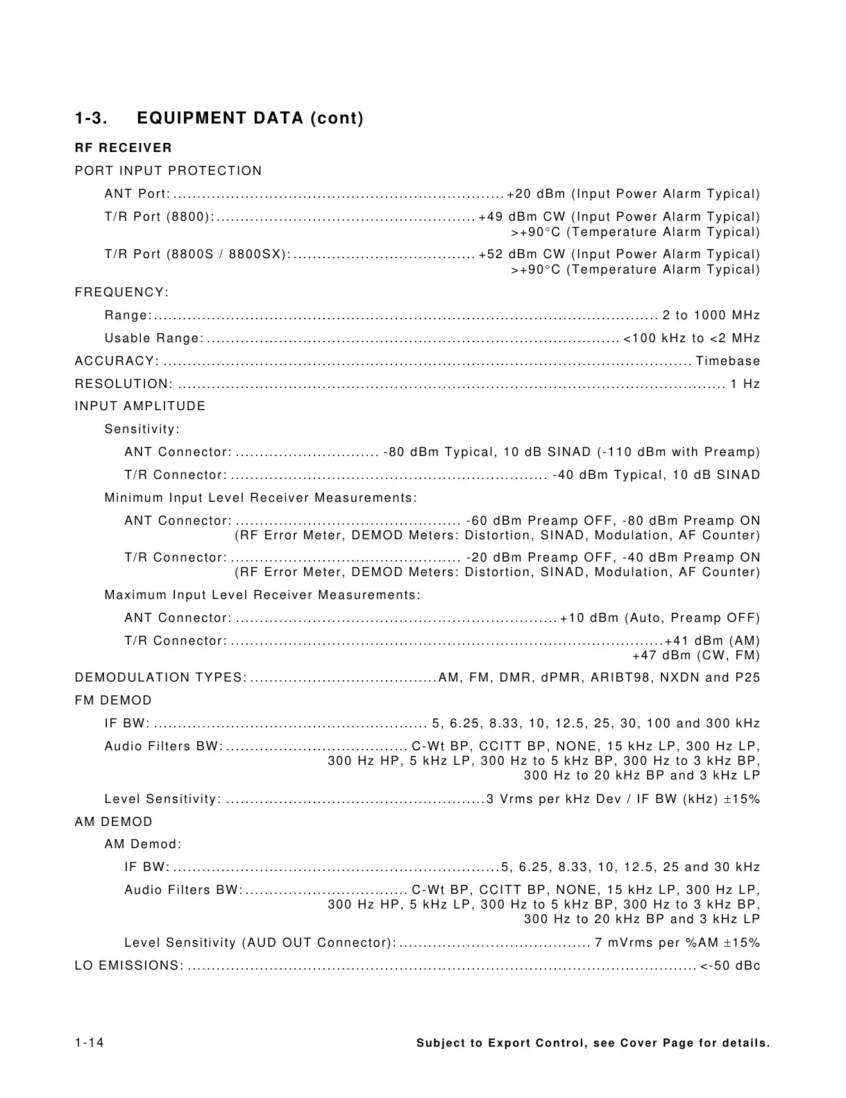 IF BW: ......................................................... 5, 6.25, 8.33, 10, 12.5, 25, 30, 100 and 300 kHz