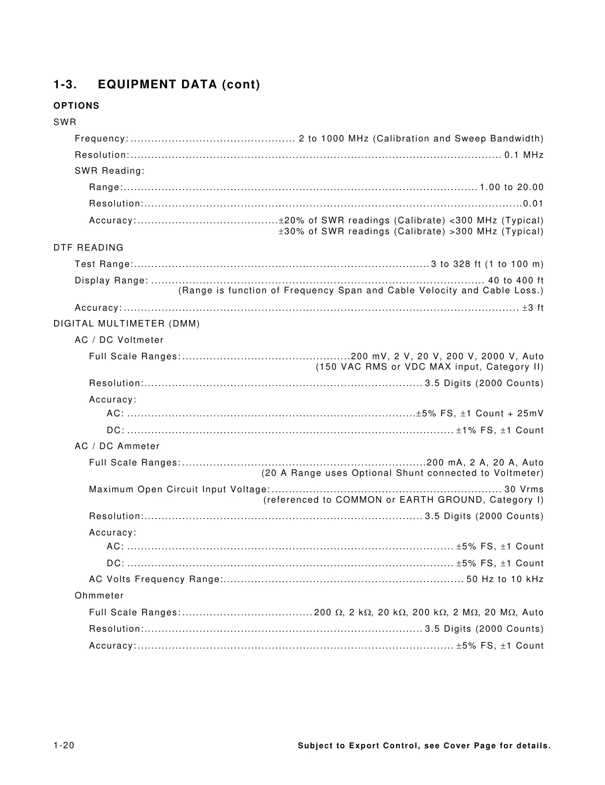 1-3. EQUIPMENT DATA (cont)