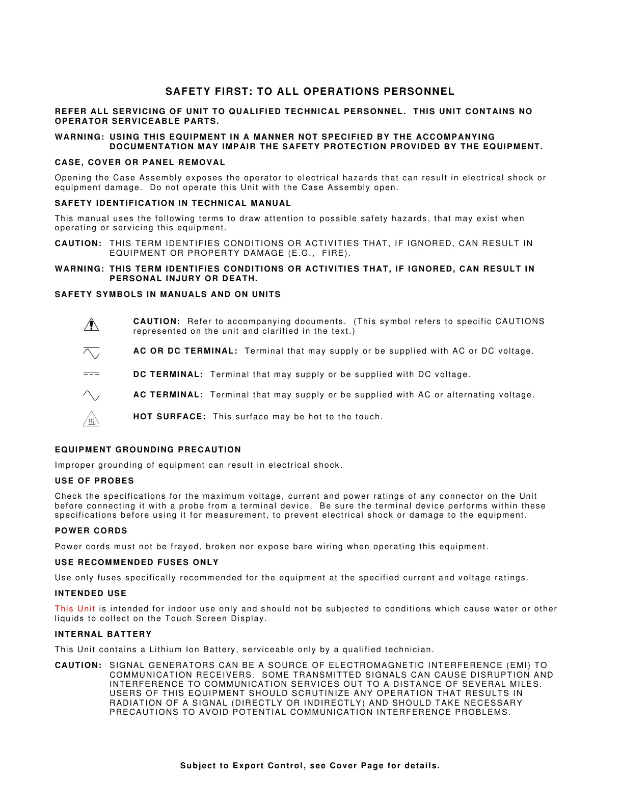 DOCUMENTATION MAY IMPAIR THE SAFETY PROTECTION PROVIDED BY THE EQUIPMENT.