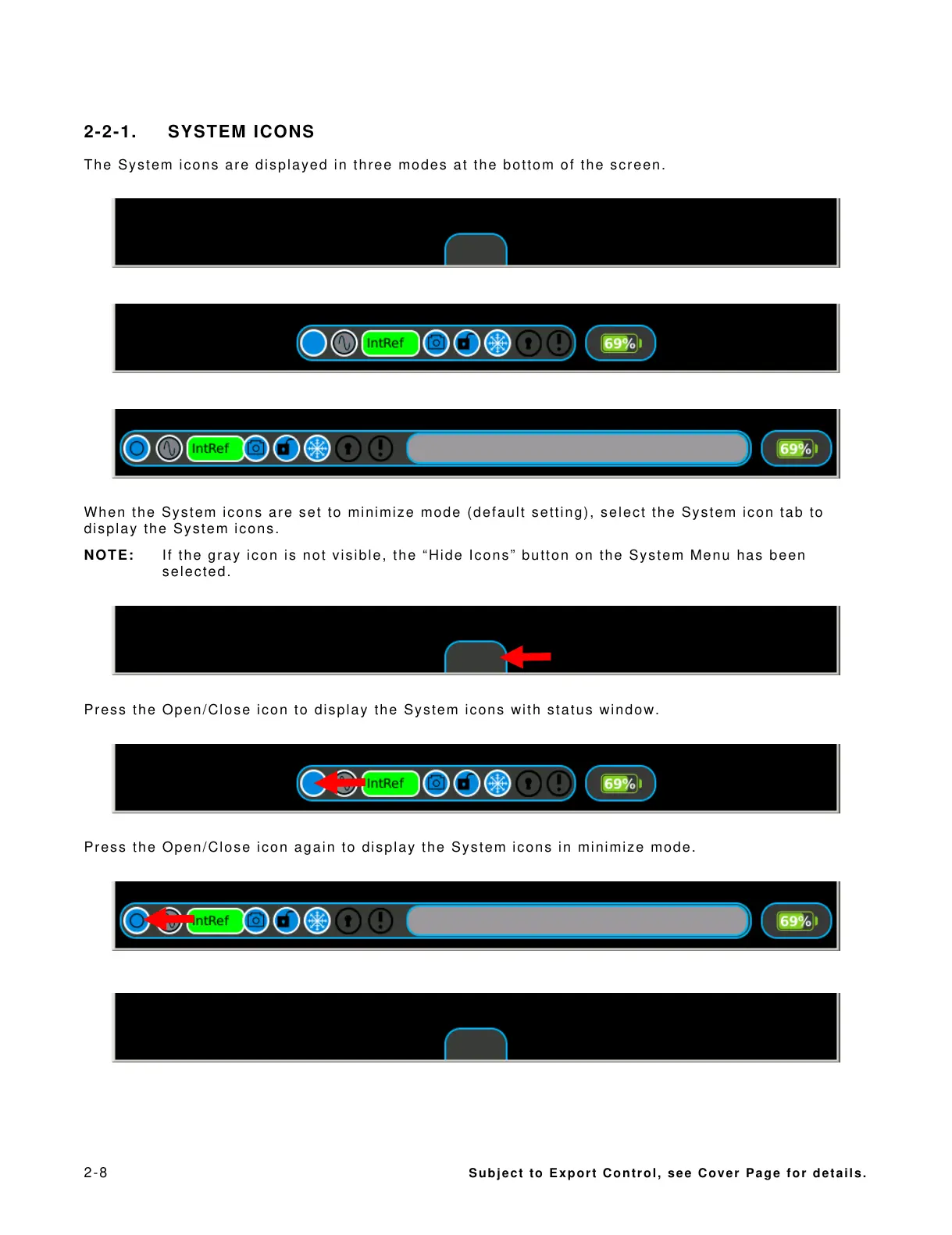 Press the Open/Close icon again to display the System icons in minimize mode.