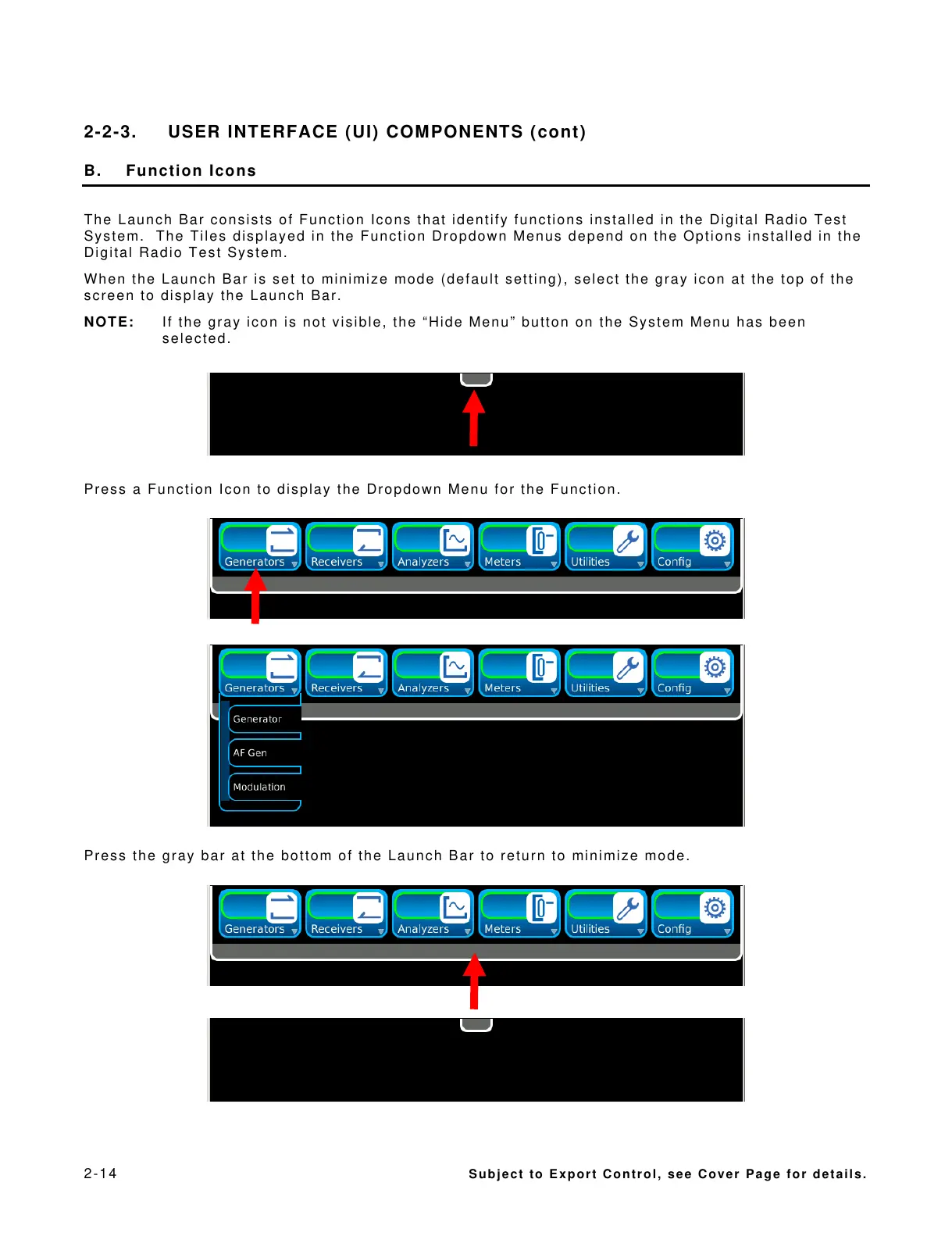 The Launch Bar consists of Function Icons that identify functions installed in the Digital Radio Test
