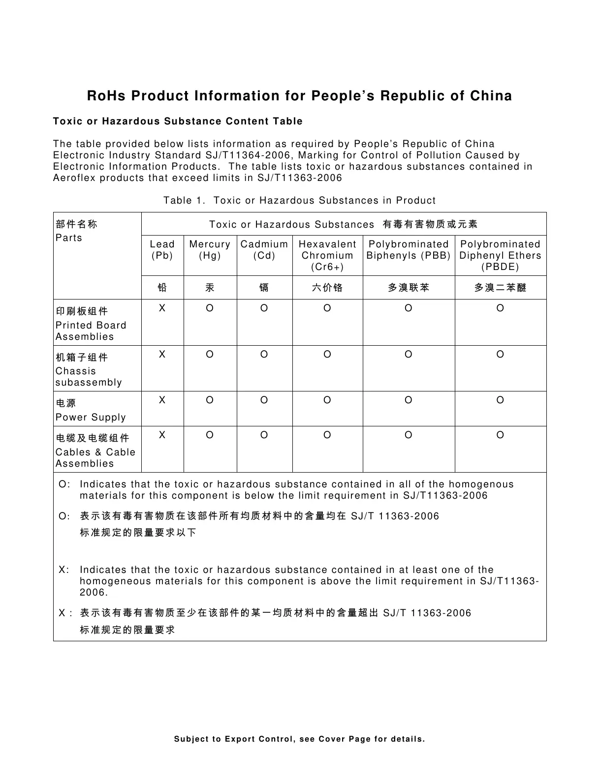 Aeroflex products that exceed limits in SJ/T11363-2006