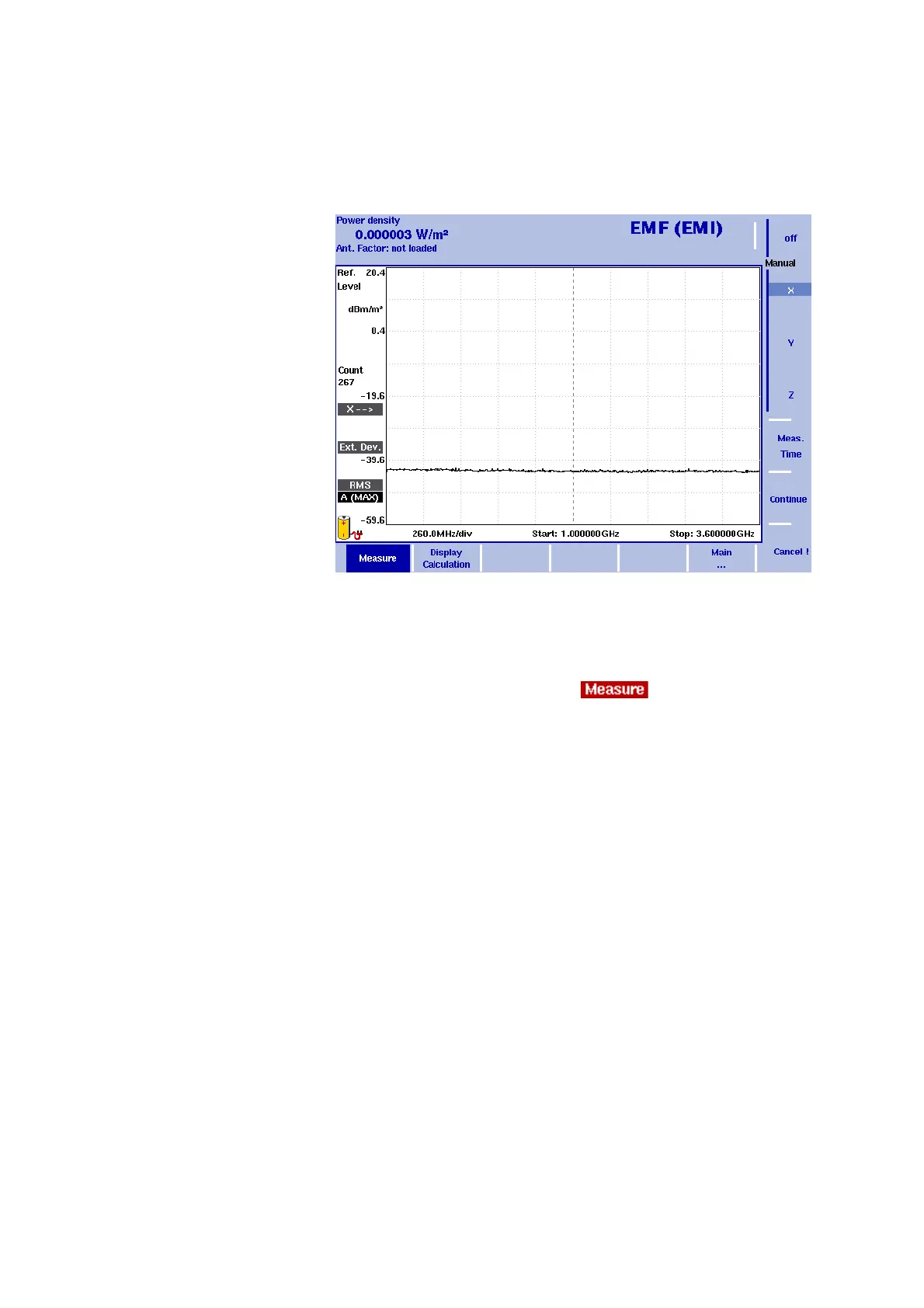Continue ! to start the first measurement. On the right-hand