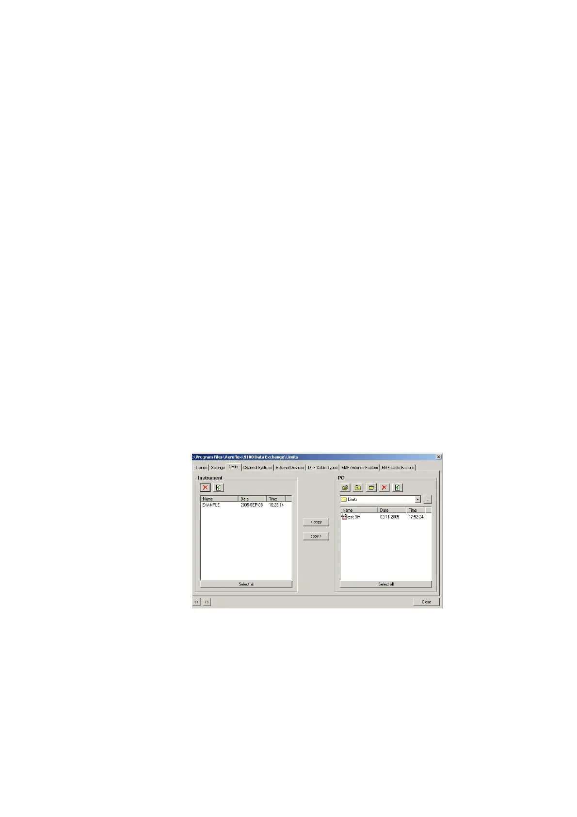 4 Choose a limits file (or multiple files) on the PC side (right-hand
