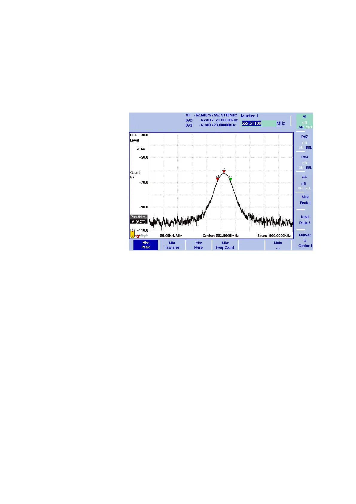 the softkey for marker 1 is highlighted.