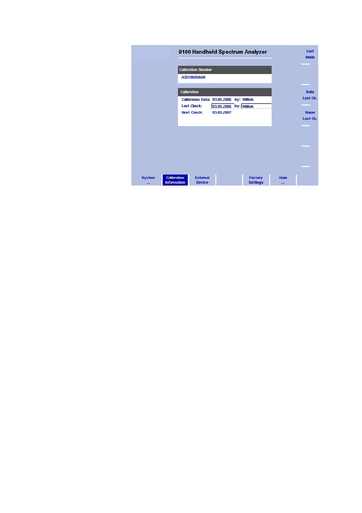 Date Last Check softkey to change the last check date. It