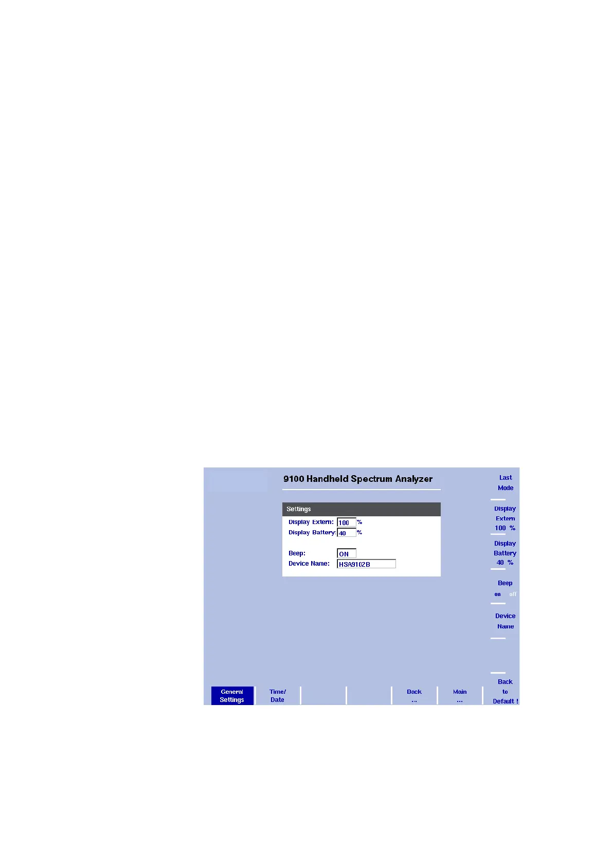 The general settings display appears (see Figure 10), showing the
