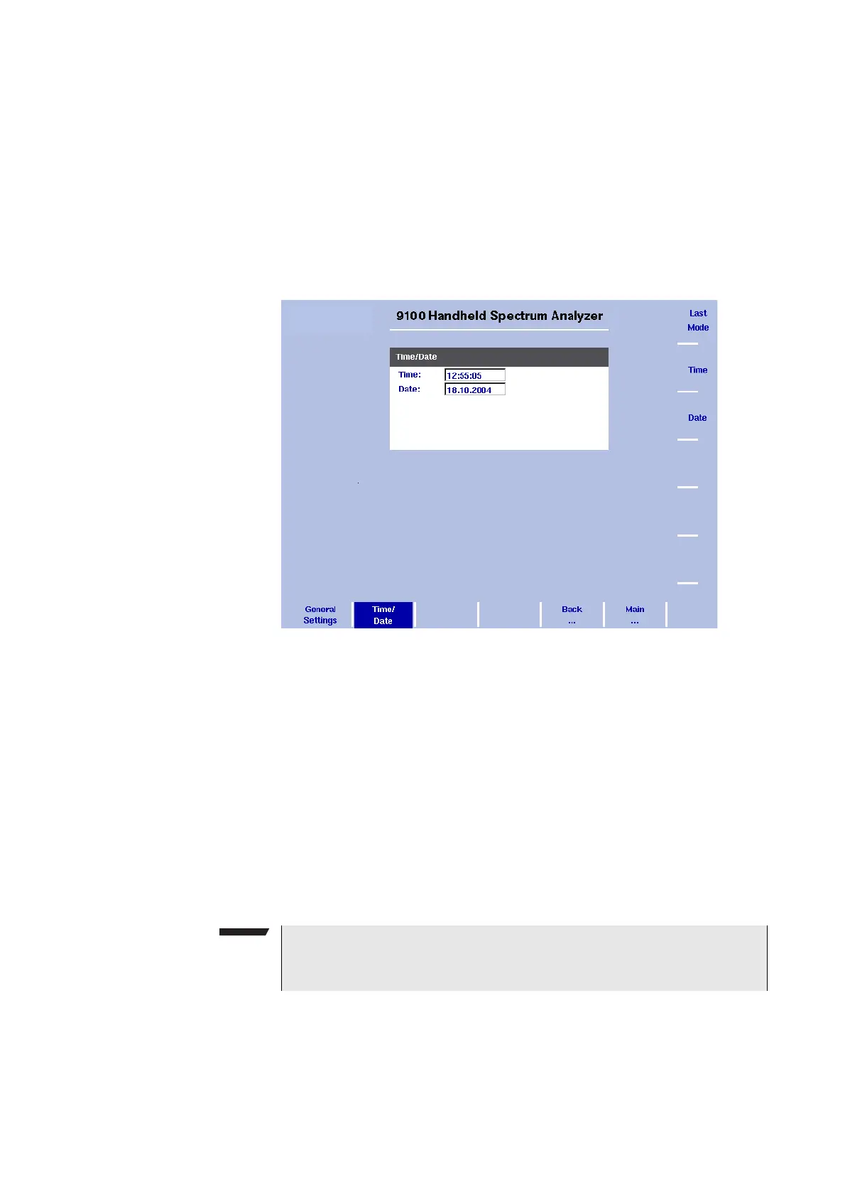 The 9102 Handheld Spectrum Analyzer includes a real-time clock. It