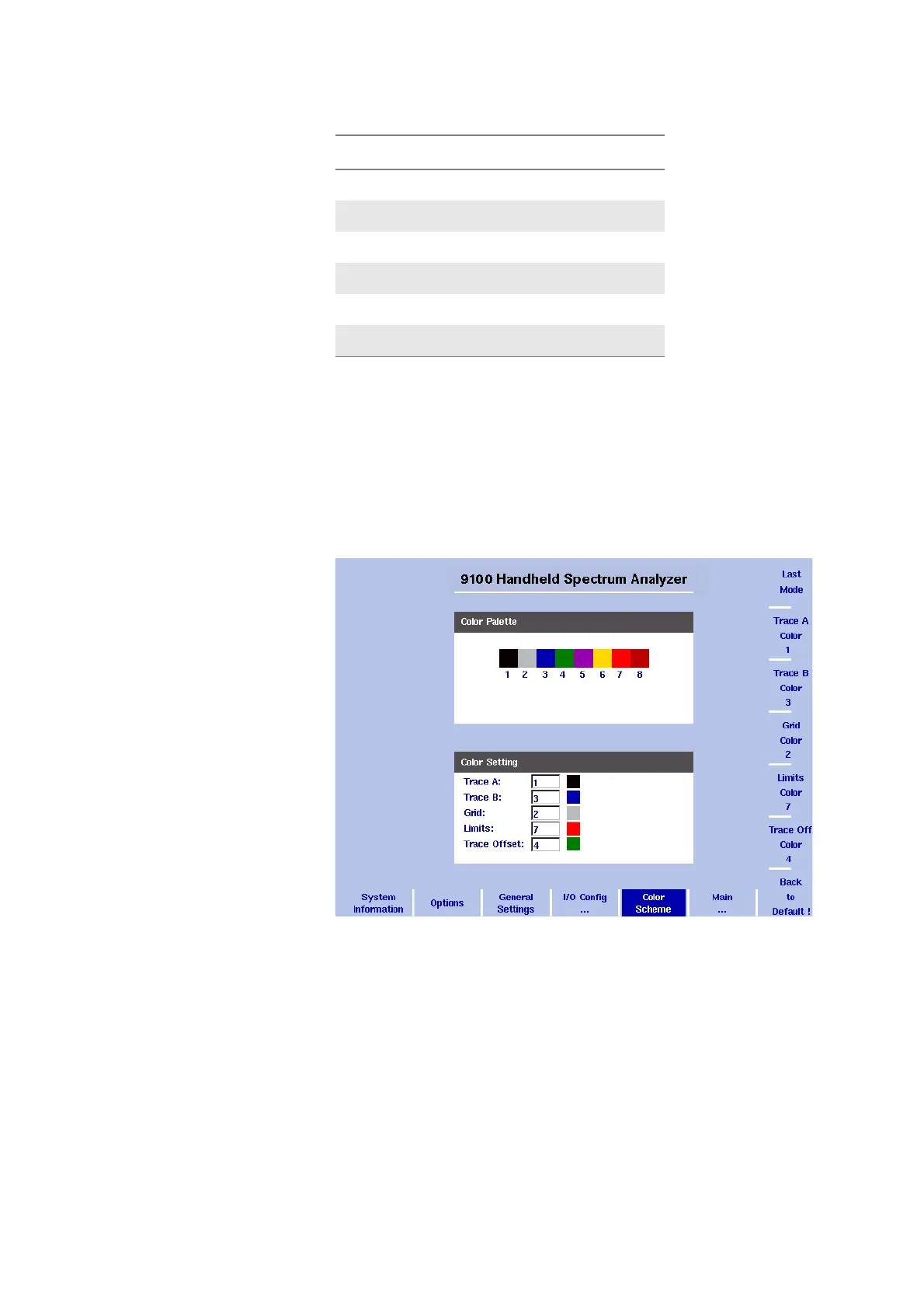 priate softkey (Trace A, Trace B, Grid, Limits or Trace Offset Color).