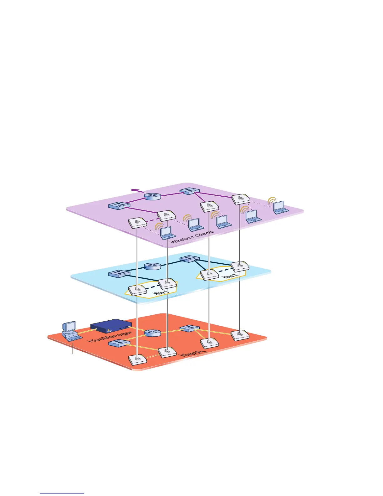 centralized configuration, monitoring, and reporting of multiple HiveAPs. These three planes are shown in Figure 1.