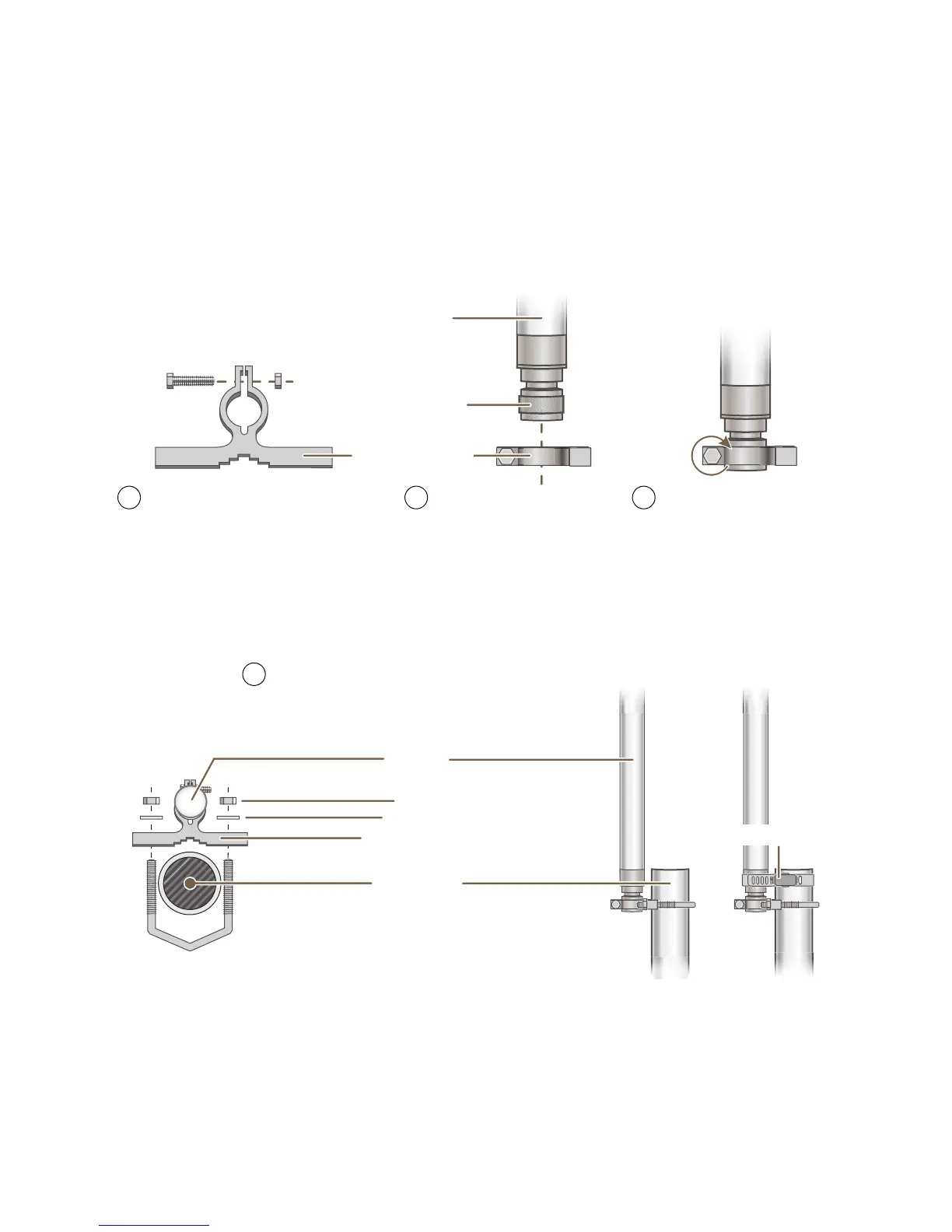 For each antenna that you mount, you need an attachment clamp, a 1 3/8" bolt and nut, a V-bolt, two washers and