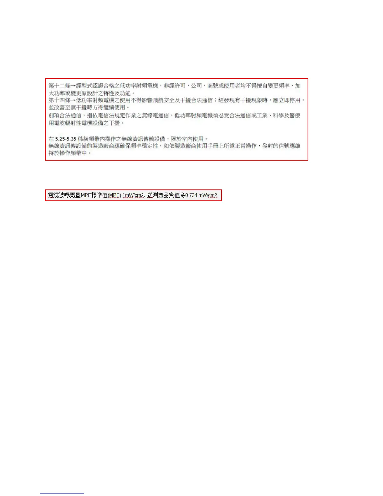 (1) 「經型式認證合格之低功率射頻電機,非經許可,公司、商號或使用者均不得擅自變更頻率、加大功率或變更