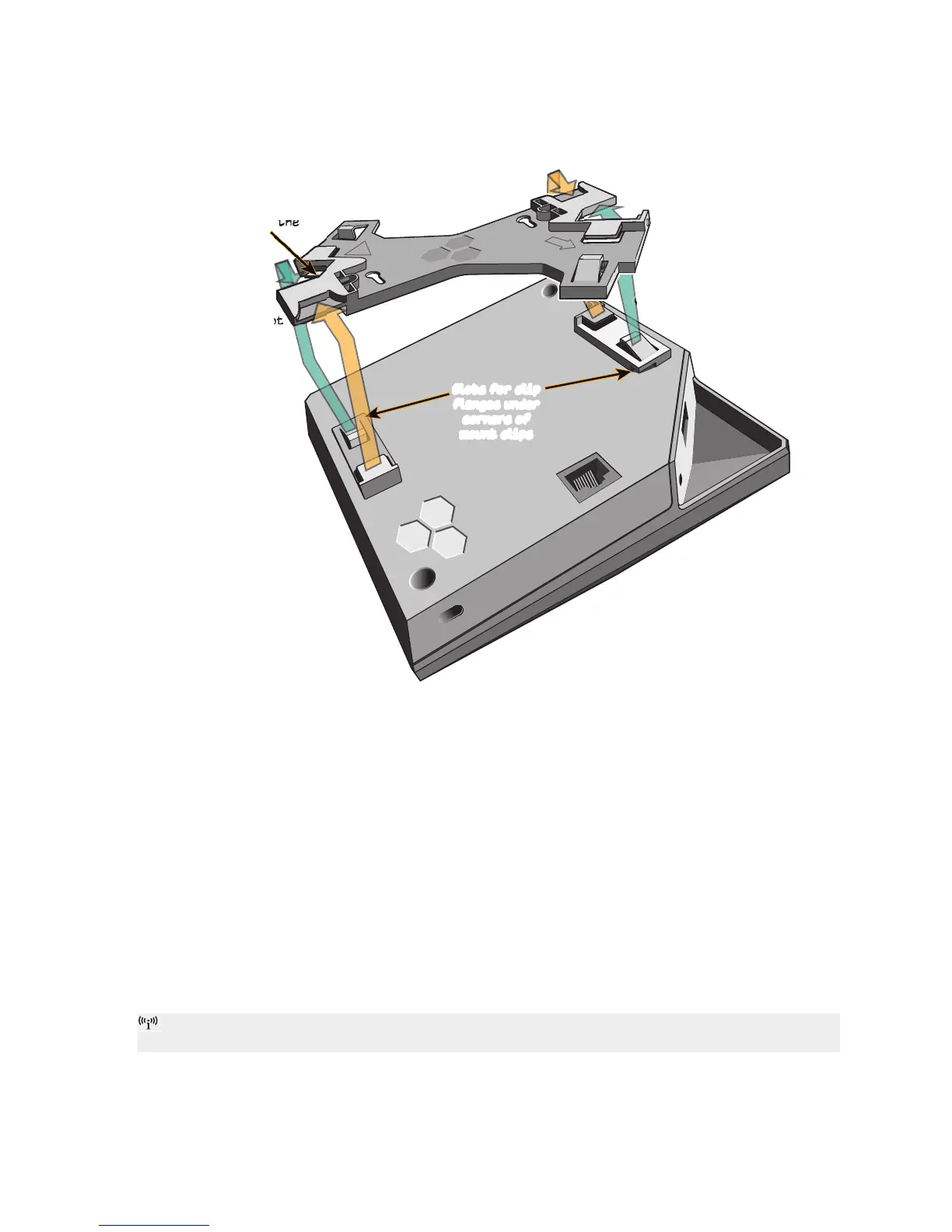5. For a square mount, repeat Steps 2 and 3 using the mount tabs and clips on the bottom of the device