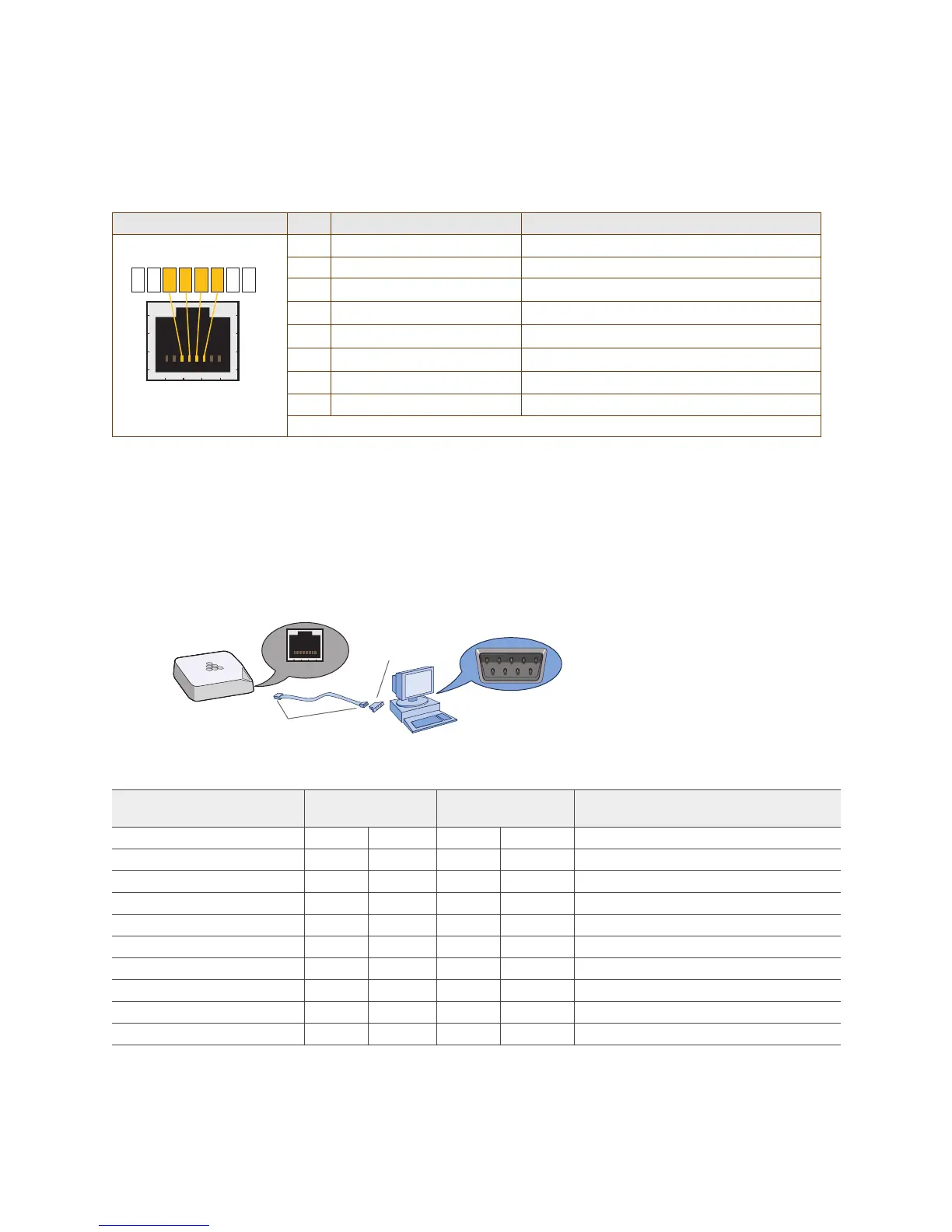 Table 3 Wiring information for a serial cable with RJ-45-to-female DB-9 adapter
