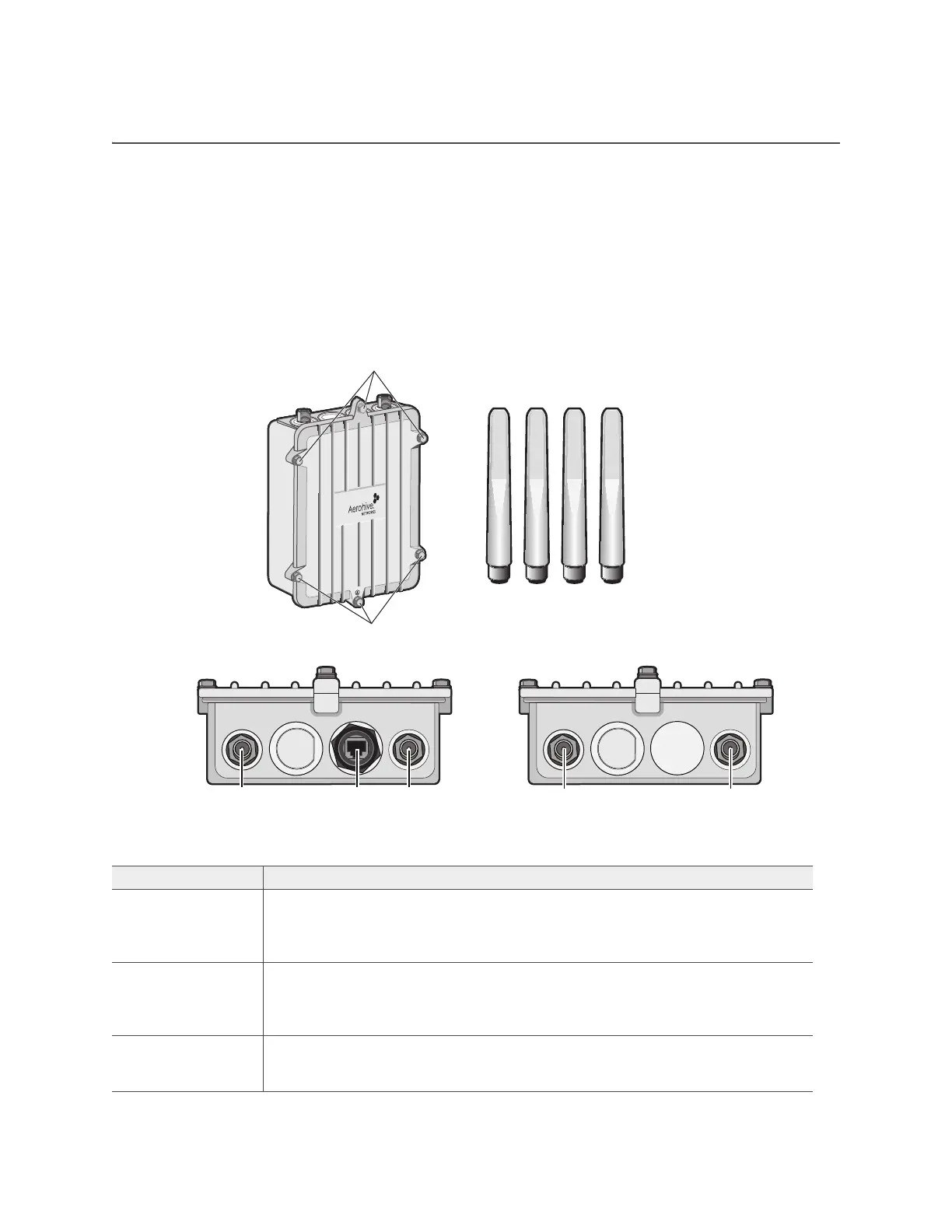Antenna connectors The AP170 chassis provides four antenna connectors. Two connectors on the top