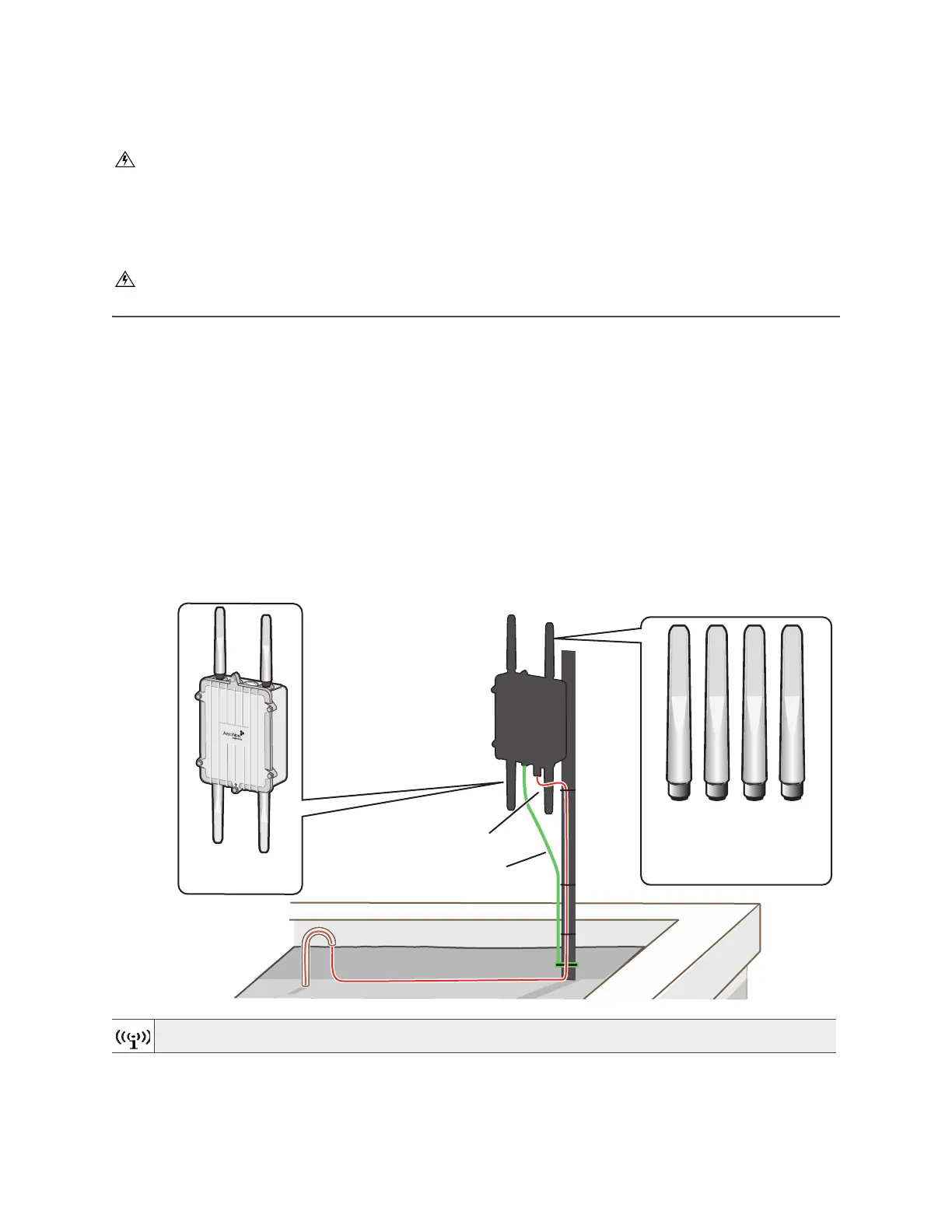 Do not connect or disconnect antennas or cables from the AP170 during periods of lightning activity.