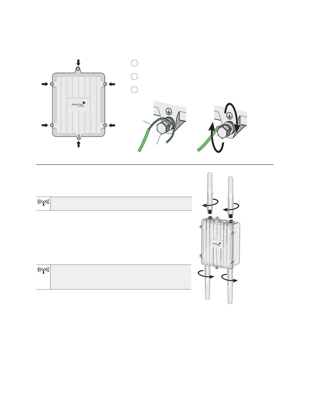 To connect the antennas, screw them onto the antenna connectors