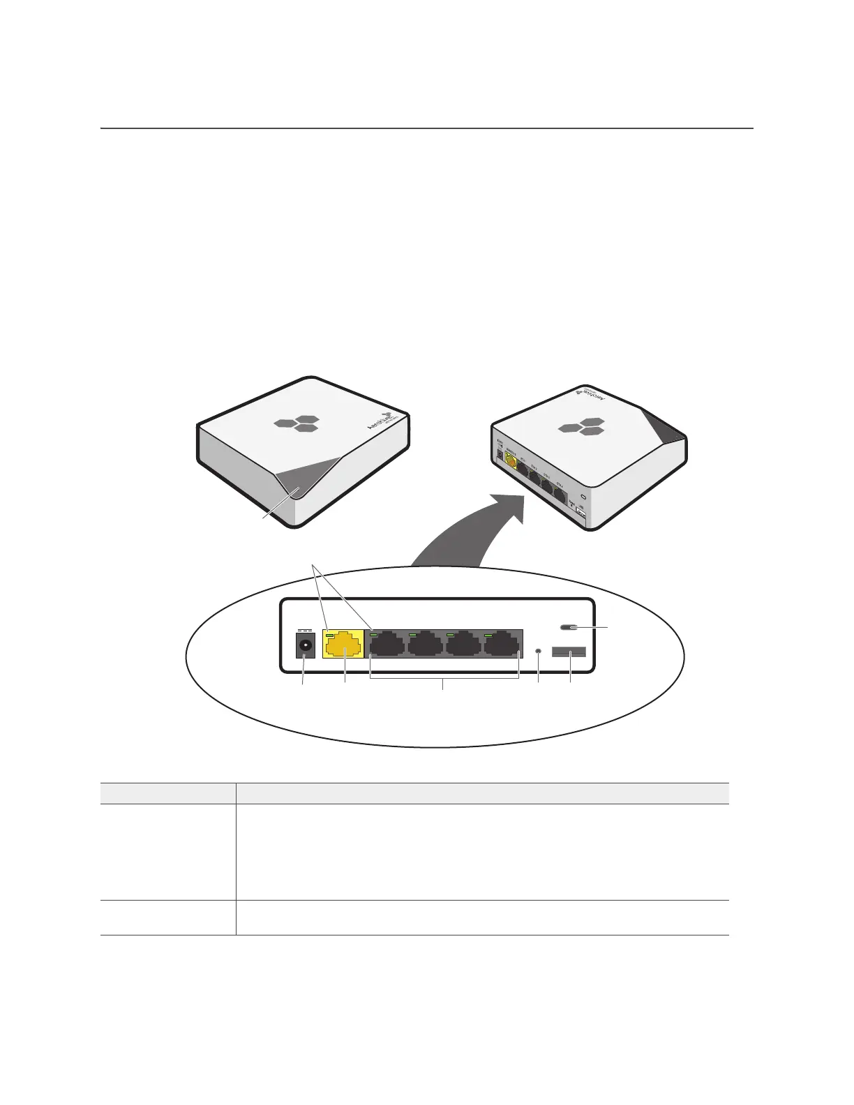 Figure 1 shows the BR100 router hardware components. Each component is described in Table 1 "BR100